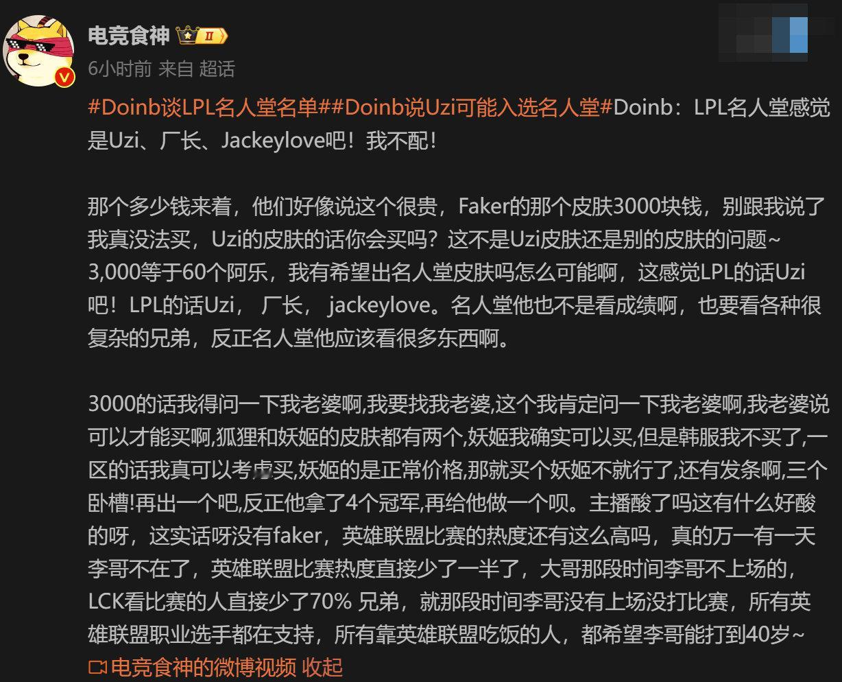 #TheShy能否入选英雄联盟名人堂##Doinb说Uzi可能入选名人堂#