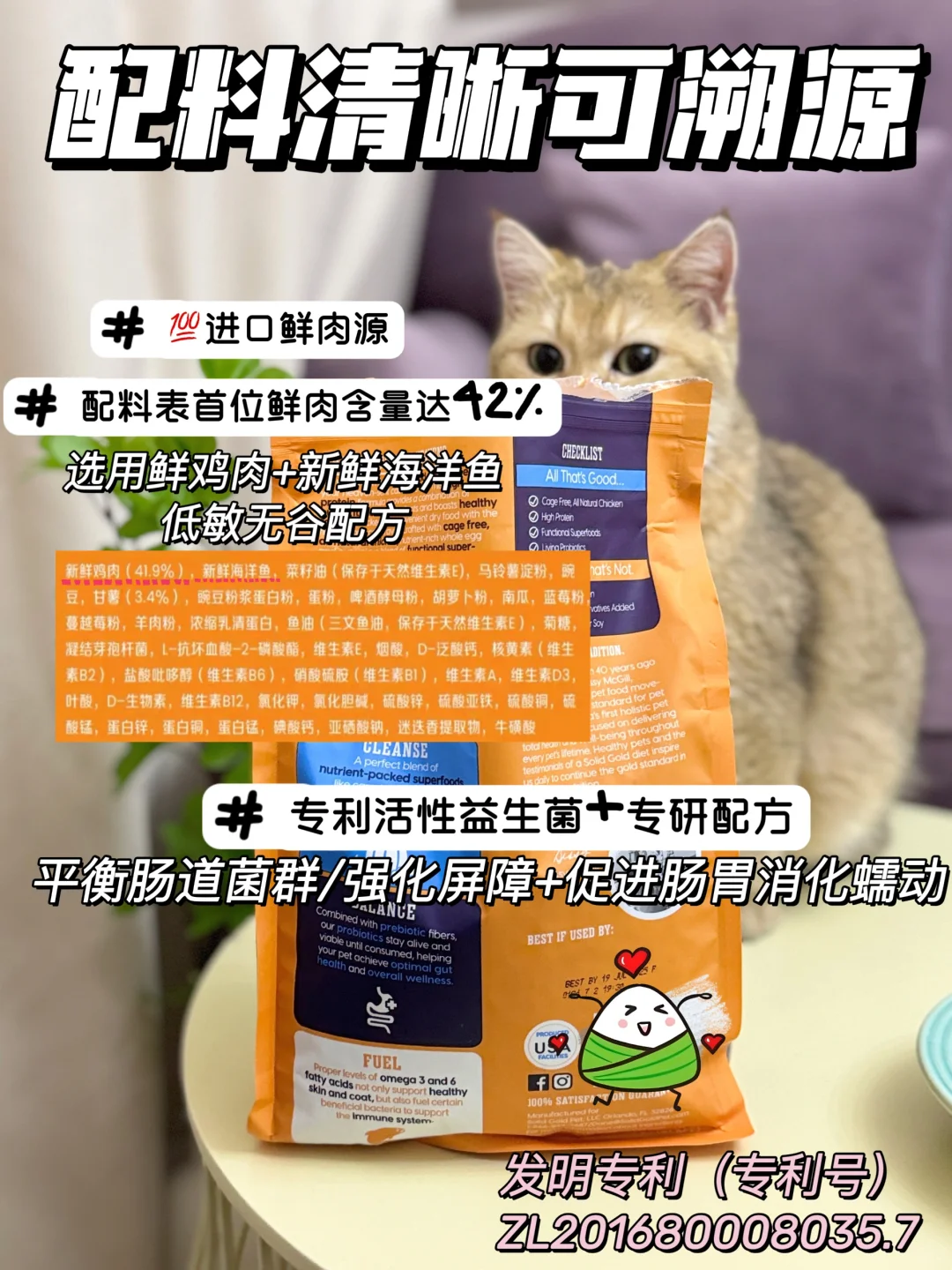 -独家专研肠道配方,添加了专利益生菌,还是有发明专利的,专利号(Zl201680008035.7),可以帮助毛孩子强化肠道屏障,达到了处方级别,肠胃脆弱或者在恢复期的毛孩子也可以吃