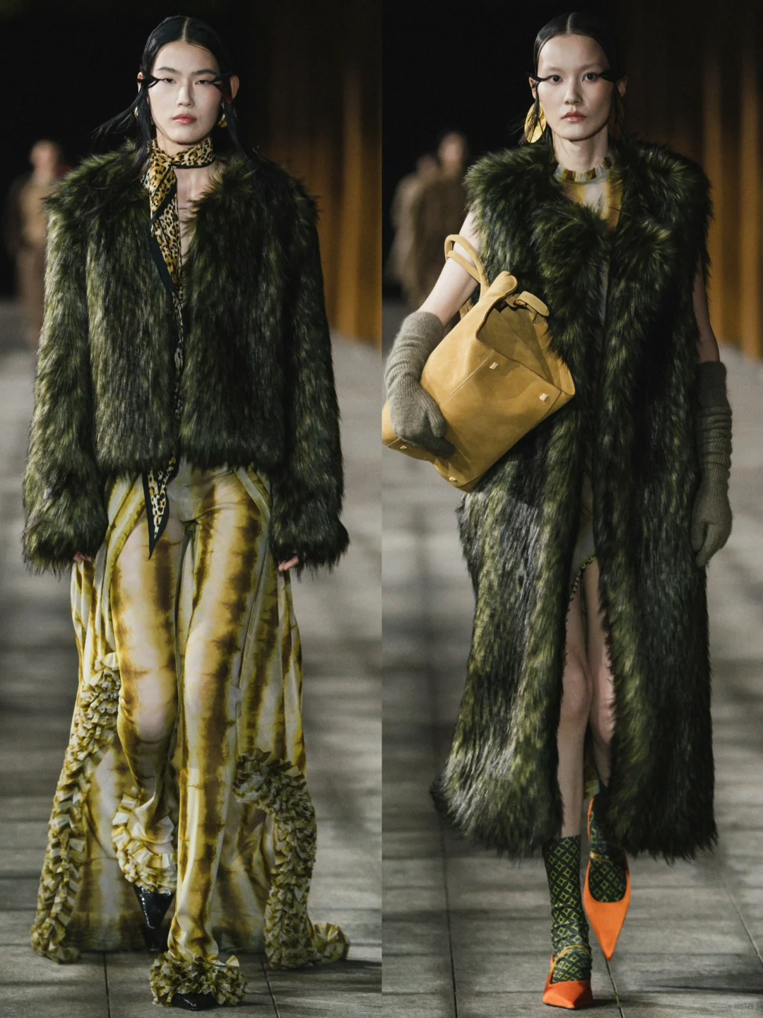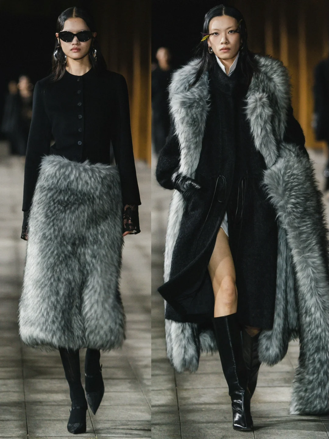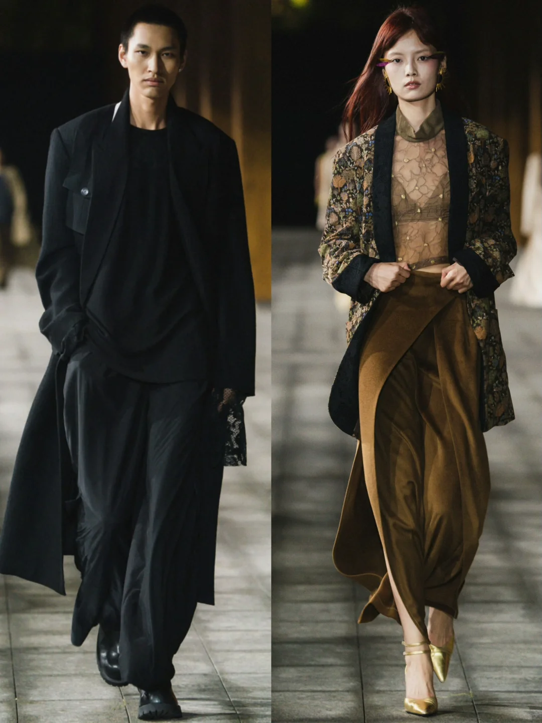 这一季的作品中,传统工艺是YIYI易一的怀旧和致敬,也是时尚的复古元素,与现代审美相糅合,以诠释轮廓之美的设计展现简约出众,为这一季冬日美学格调焕发新貌。通过皮革、皮草、镂空蕾丝、刺绣图案、重工的大面积点缀、卷曲的荷叶边等元素表现女性的柔美与魅力。以及为简约设计增添的视觉亮点,系列于廓形大衣与柔软织物,剪裁利落的直身连衣裙上的崭新呈现,或披挂、或围绕,在轮廓张弛间,勾勒 Gentlewomen 余裕自在的形态。对自由精神的追求,从松弛的空间气场中升起,又在舒适的感受间归隐于无形。