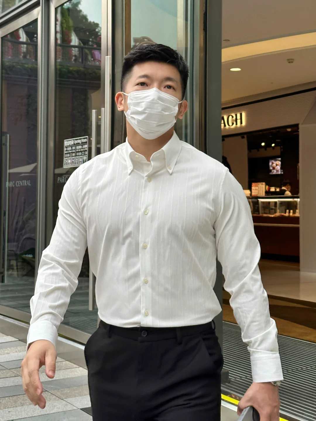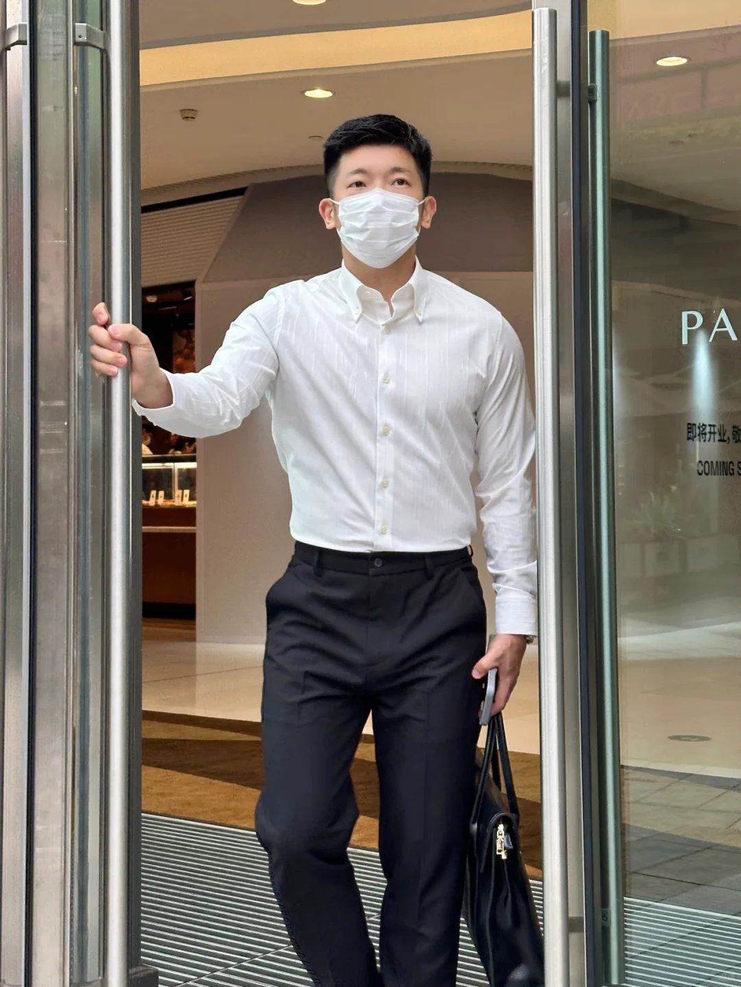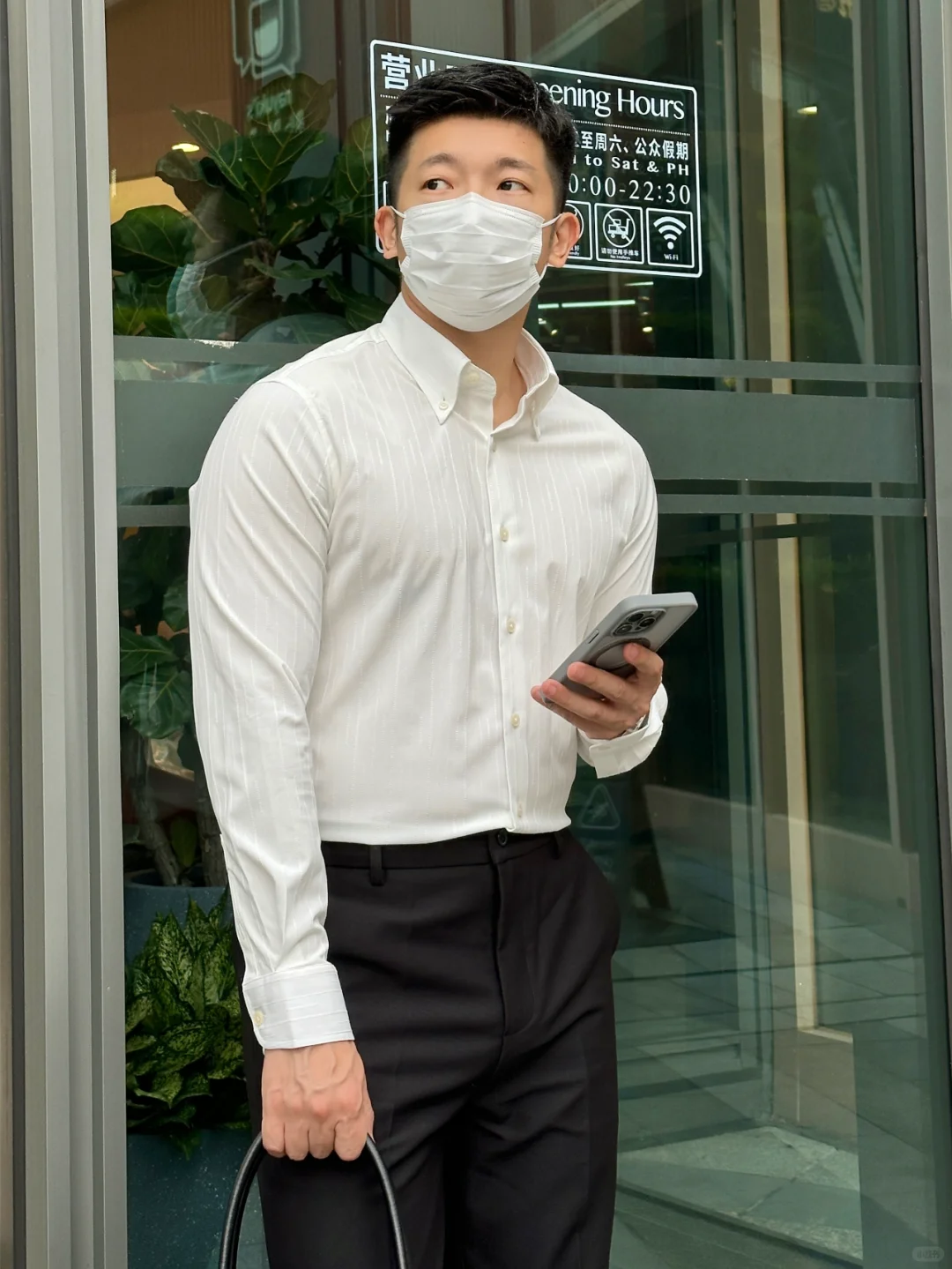 通勤一整天,今天下班去逛商场,逛逛商场散散心,今天穿搭的让我舒心。男士基本的黑白穿搭,在身上却透不出一点班味,男生最基础的白色衬衫,基础却是更有高级感。大方领衬衫肌理条纹的设计,让这件衬衫比起常规衬衫更加附带有质感,穿在身上就是干净又高级的加分项。清风又通透简约的感觉让我一天都干劲十足!
