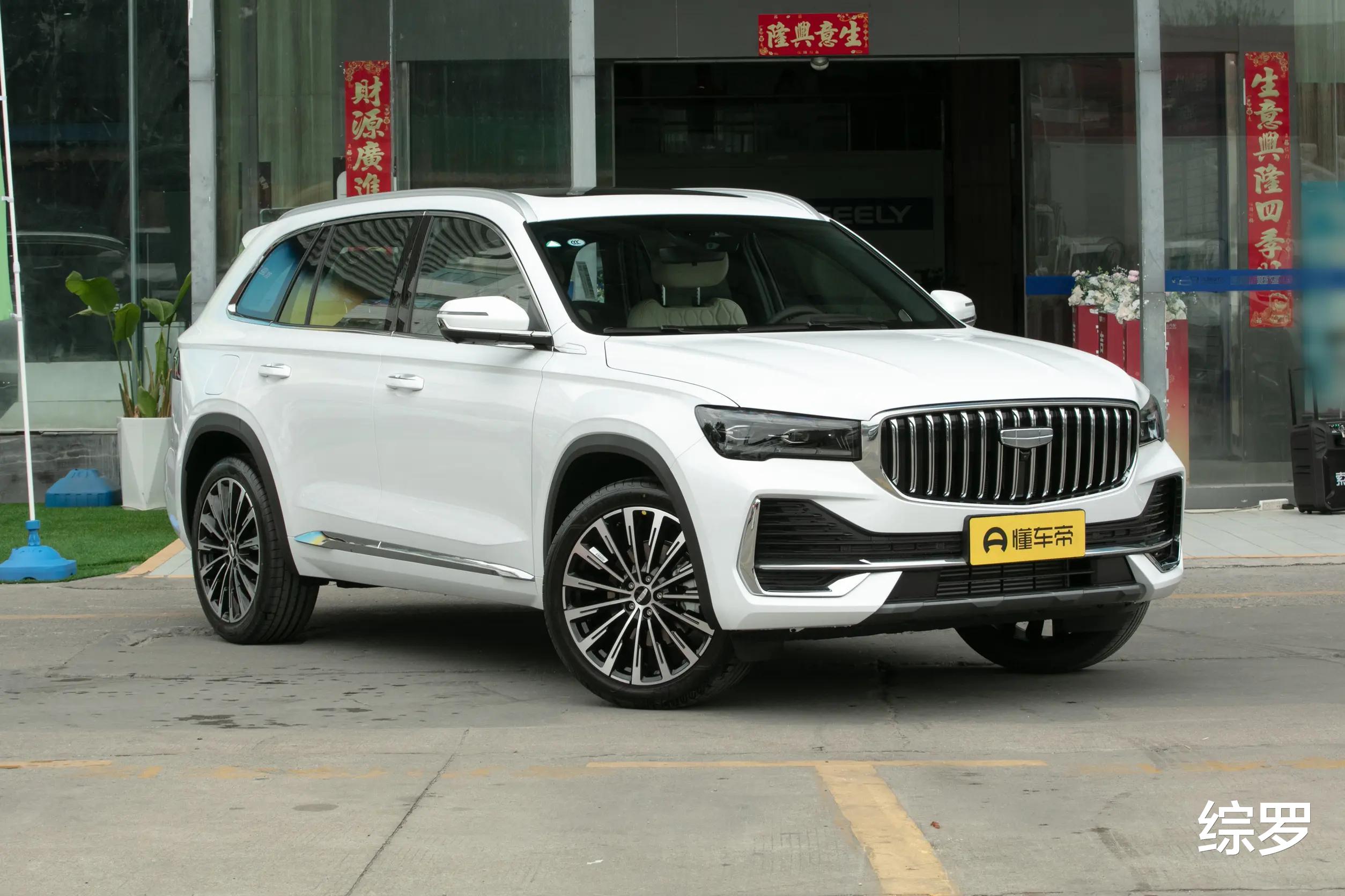 推荐理由:5门6座SUV,第三排可容身高1.75m成人;全车37处储物空间+可下沉式后备箱(最大2360L),婴儿车、露营装备轻松装载;吉利品牌认知度高,售后网点覆盖全国县城