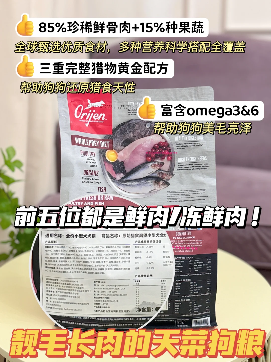 [自拍R]而且每一份狗粮都有三重完整猎物营养,肉、骨、内脏符合毛孩子原始饮食结构,果然原始猎食这块还得渴望扛大旗!