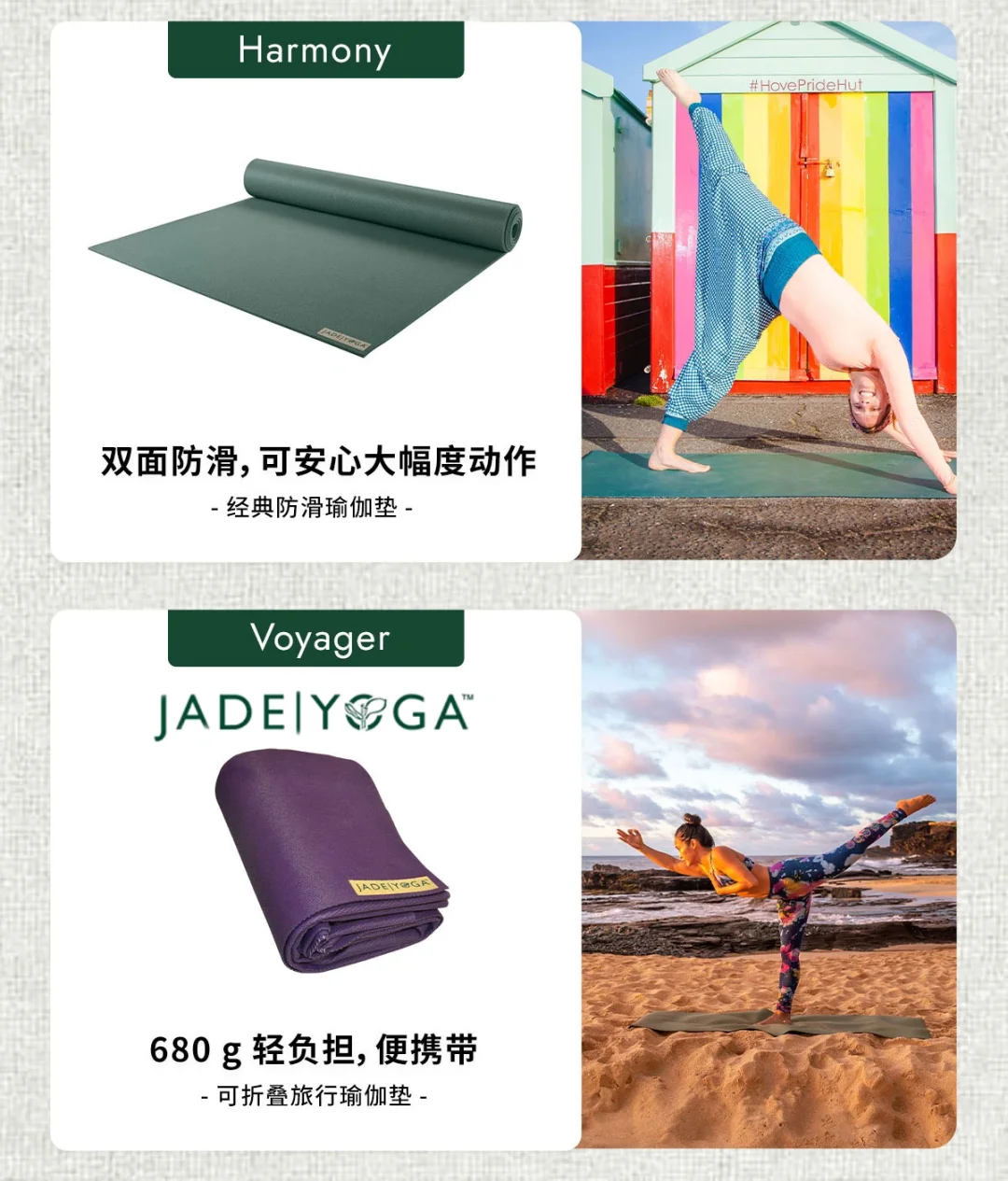 出于防滑考虑,追求摩擦力和稳定性的瑜伽大牛们和热瑜伽爱好者更偏好Jade