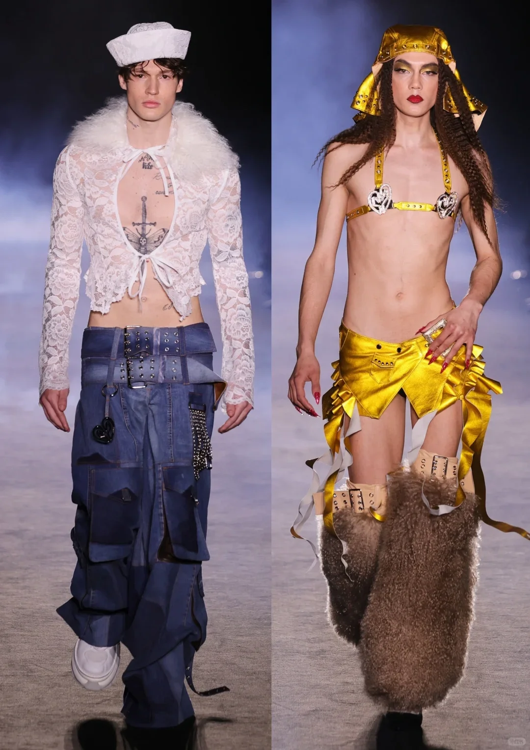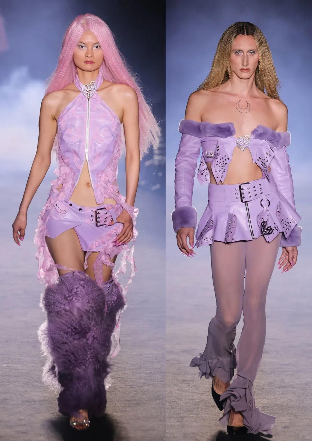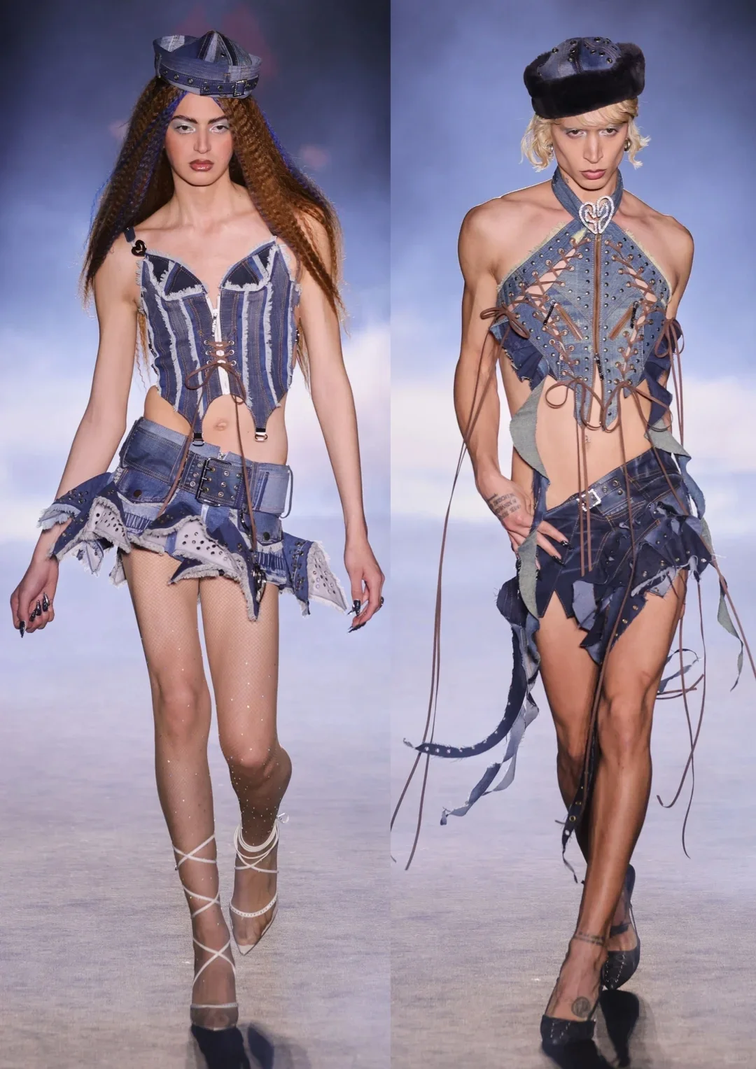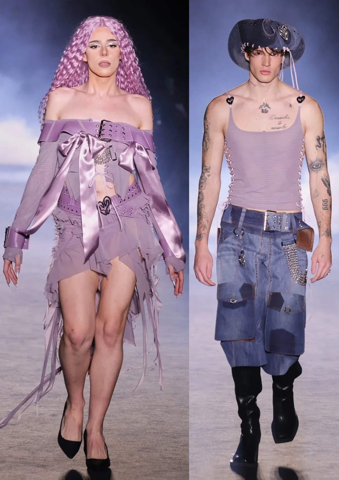 品牌标志性的赛博朋克酷辣风格,粗犷性感带个性,优雅奢华有激情!粉彩蕾丝,Y2K牛仔,芭蕾美学与海洋主题碰撞出的时尚 | DOMINNICO 2024秋冬系列这个系列的设计风格多样,展示了品牌独特的视角与畅销款式。从芭蕾舞的优雅到海洋的粗犷,“Hook”系列在风格上实现了完美的融合。