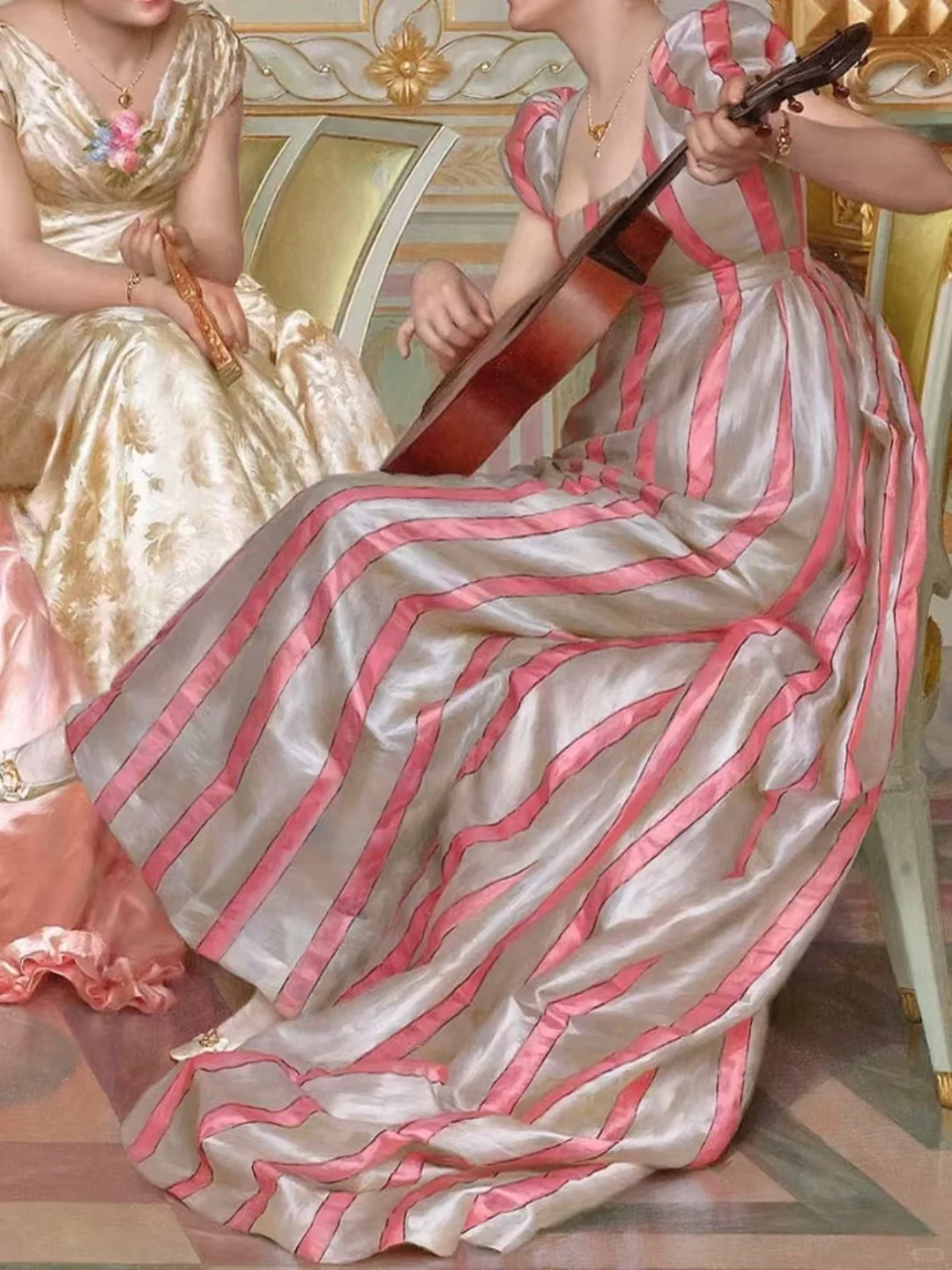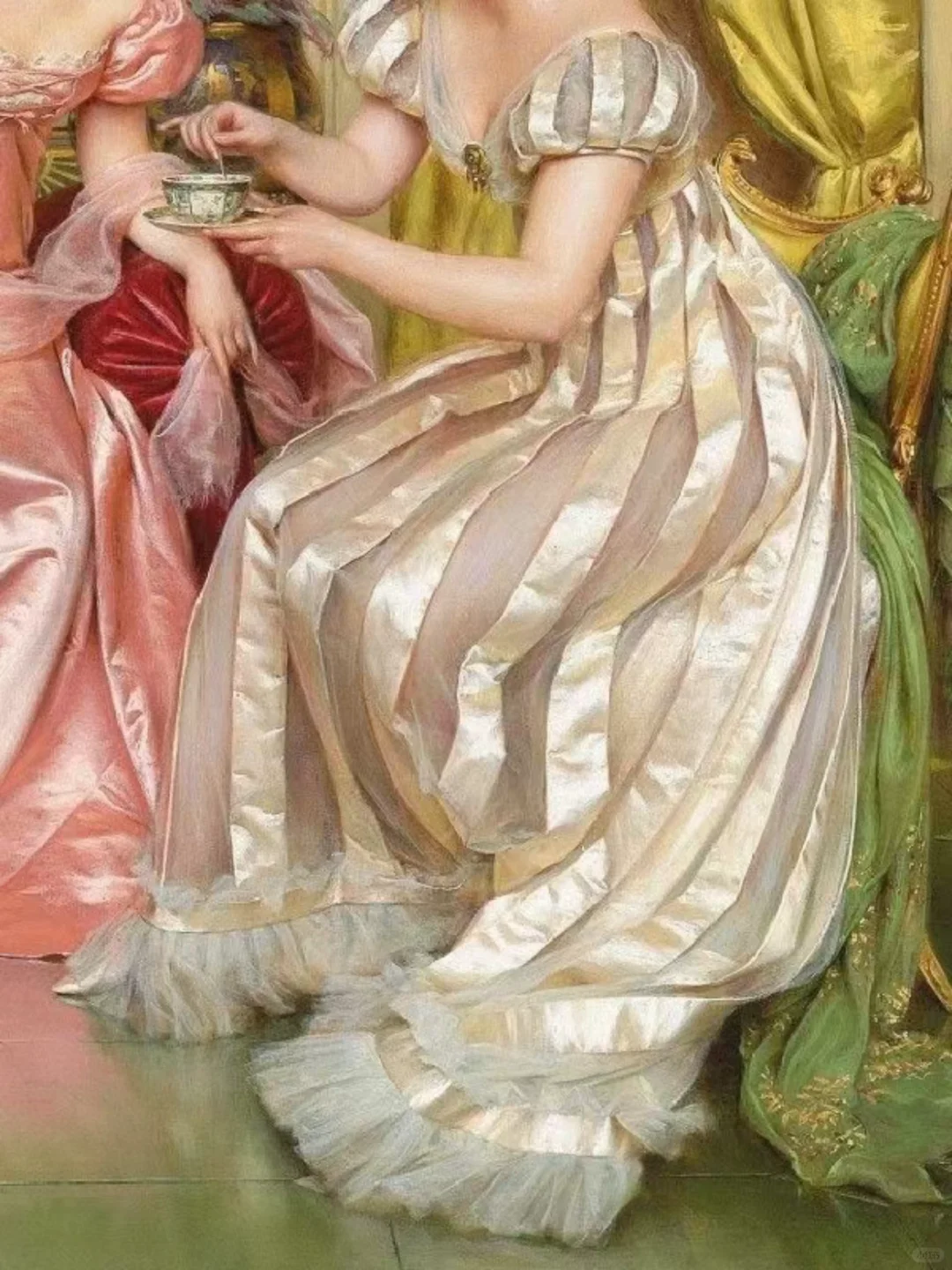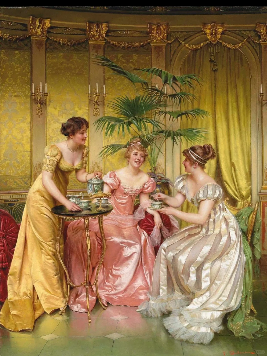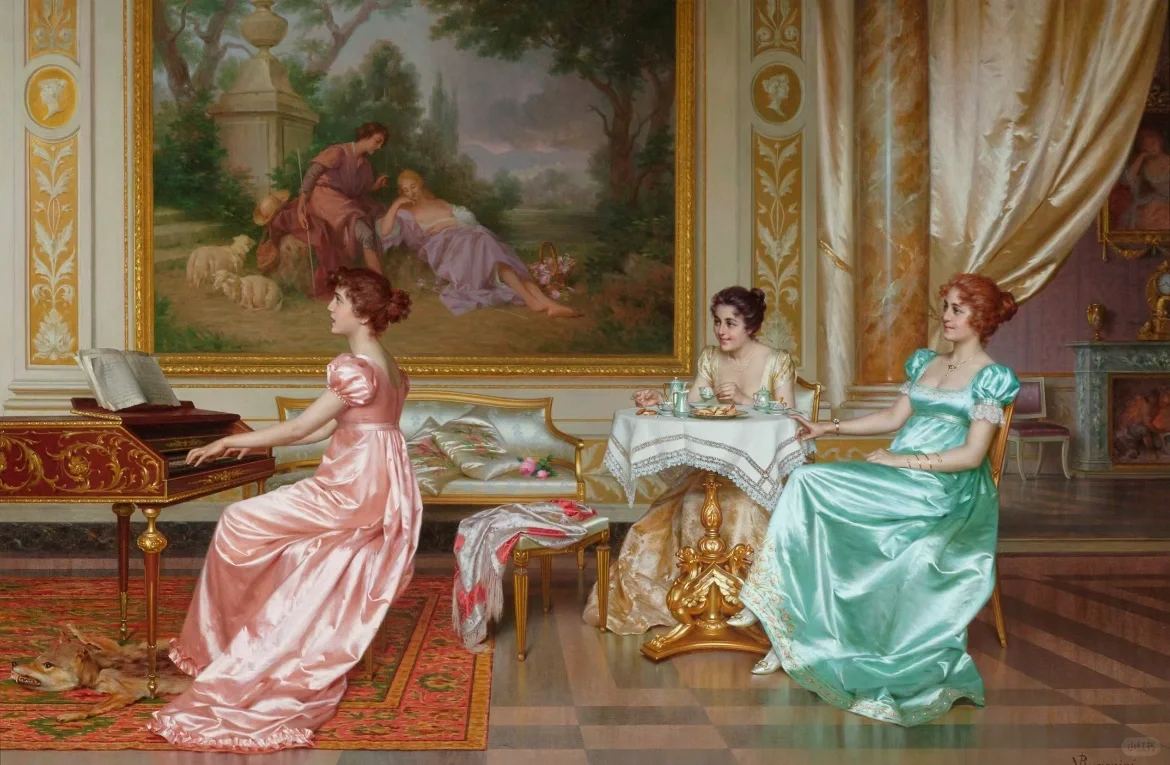 Vittorio Reggianini ( 1858-1939) 是一位意大利画家,他将幻想与现实、感性与感性相结合,最重要的是,就像许多佛罗伦萨历史流派画家一样,他画的服装都非常奢华, 成功地制作了流派作品,以几乎微型化的织物和家具渲染而受到大家的赞赏。