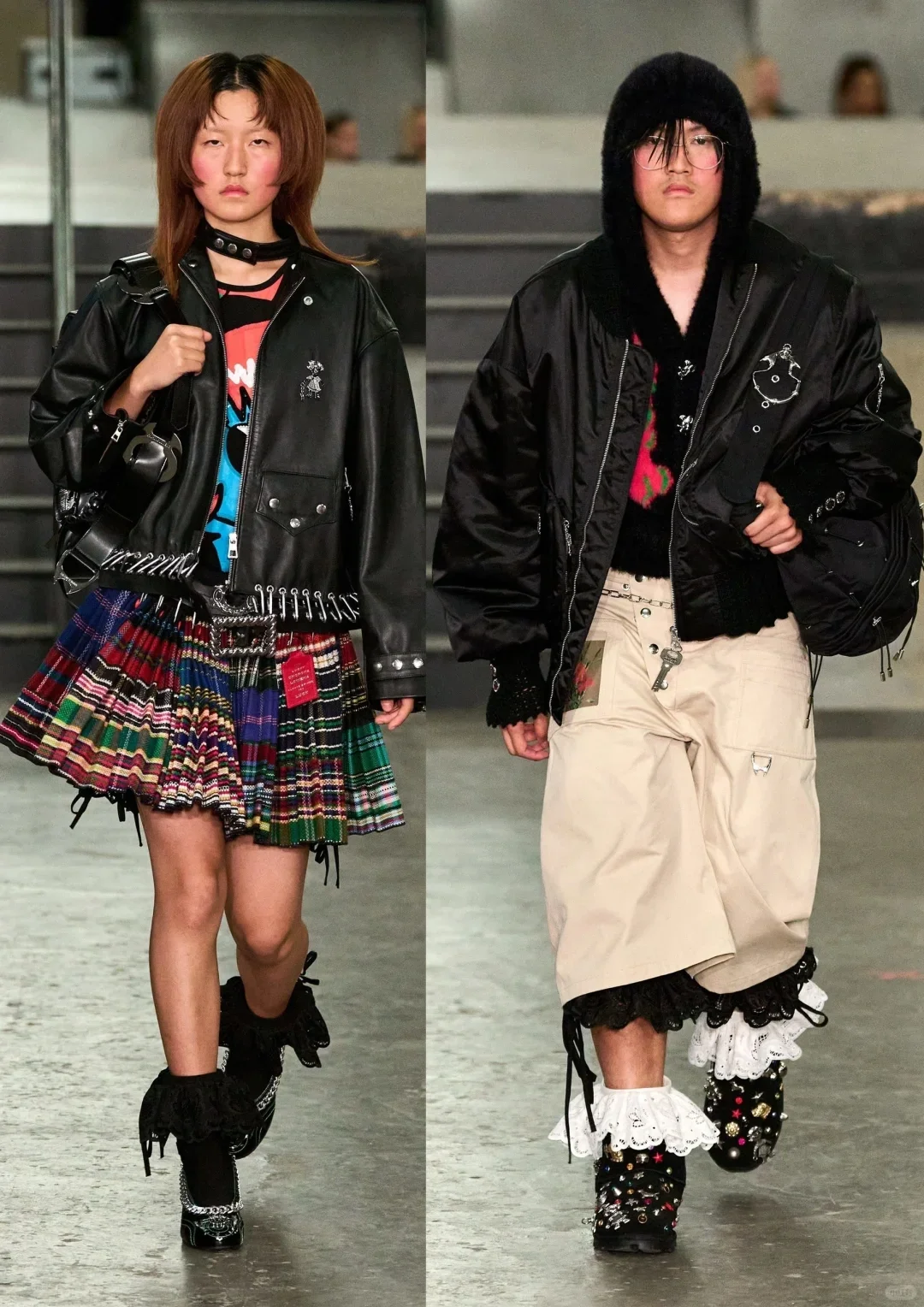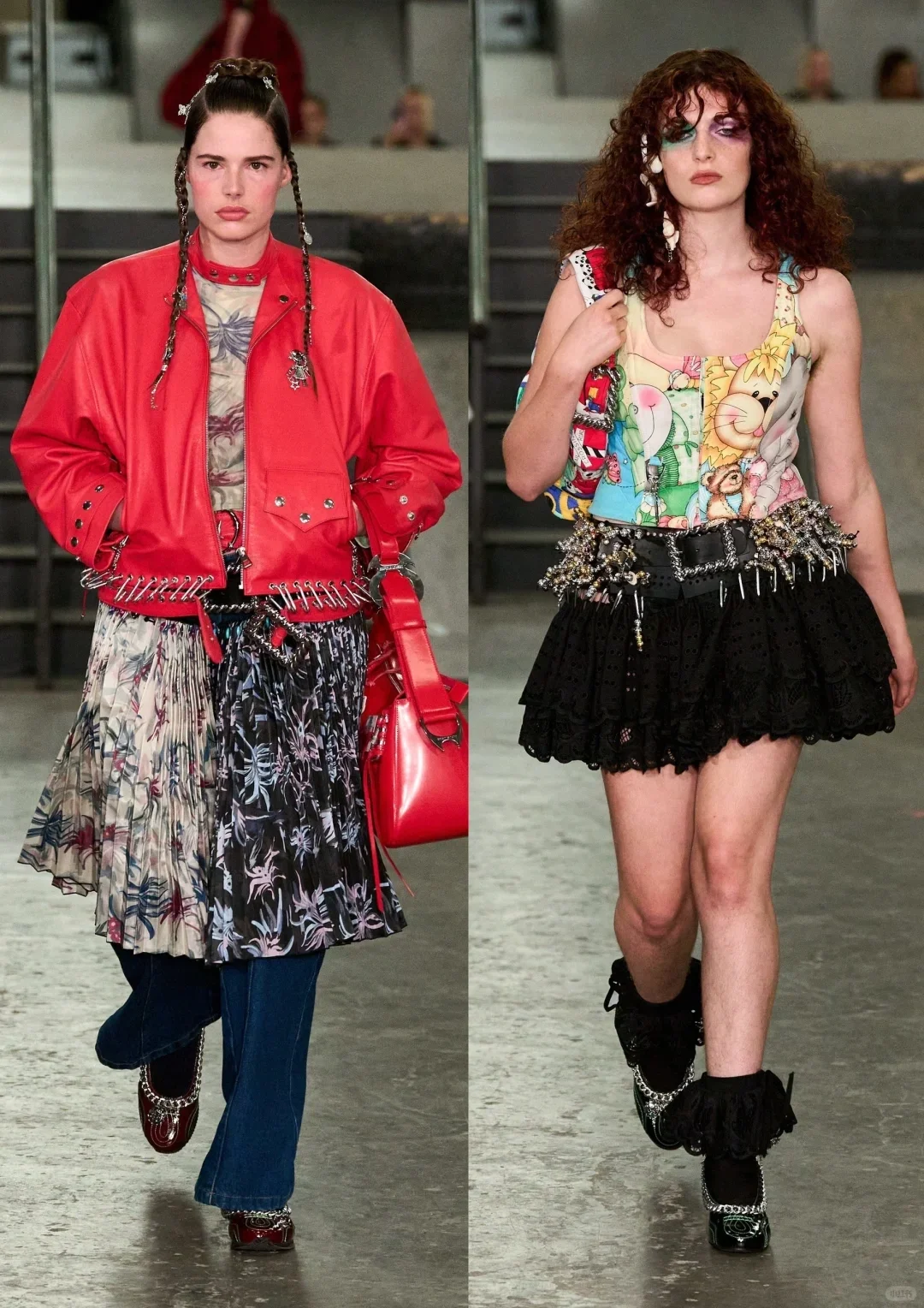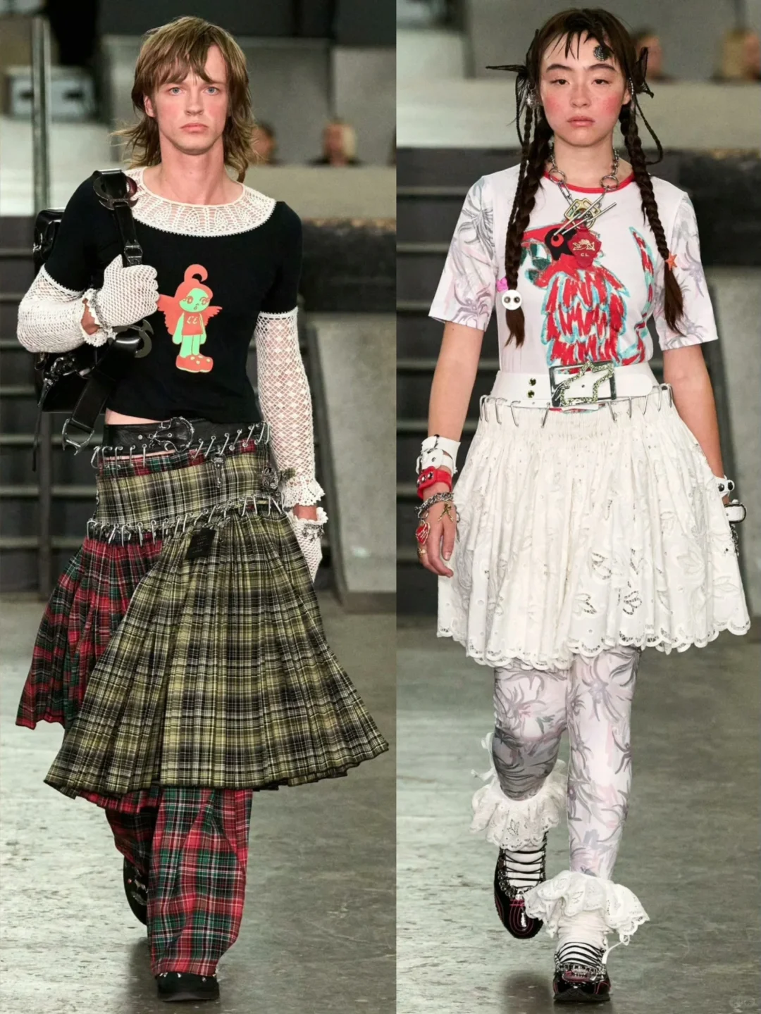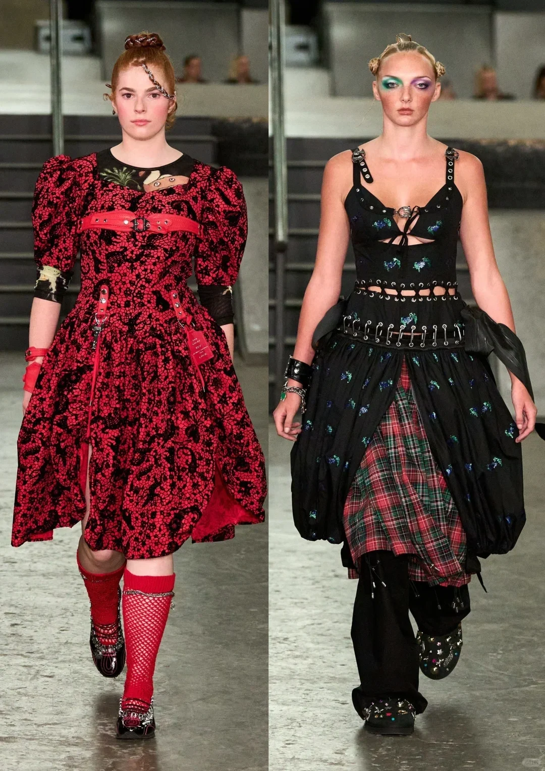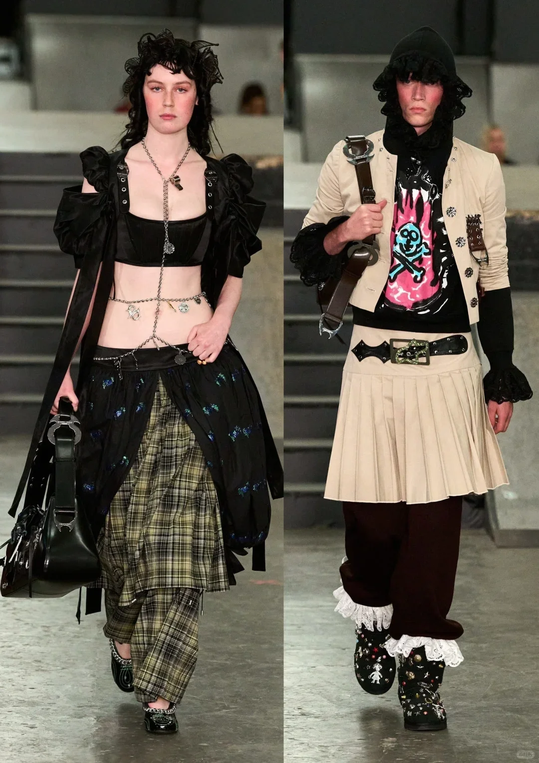 慢点长大这个世界不缺大人 千禧辣妹 Chopova Lowena 2024 SS 系列, 运用苏格兰短裙,格纹和超宽皮带等将朋克和摇滚元素融入设计,呈现90 年代垃圾摇滚和朋克文化,