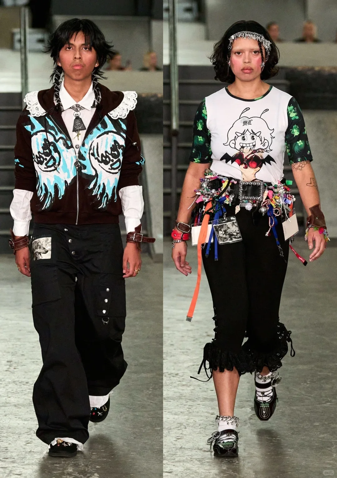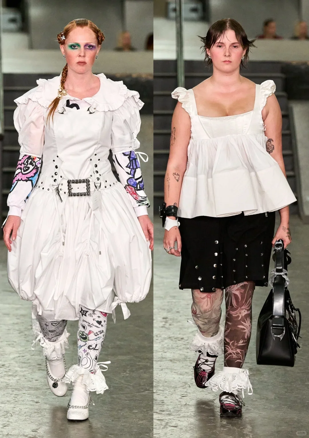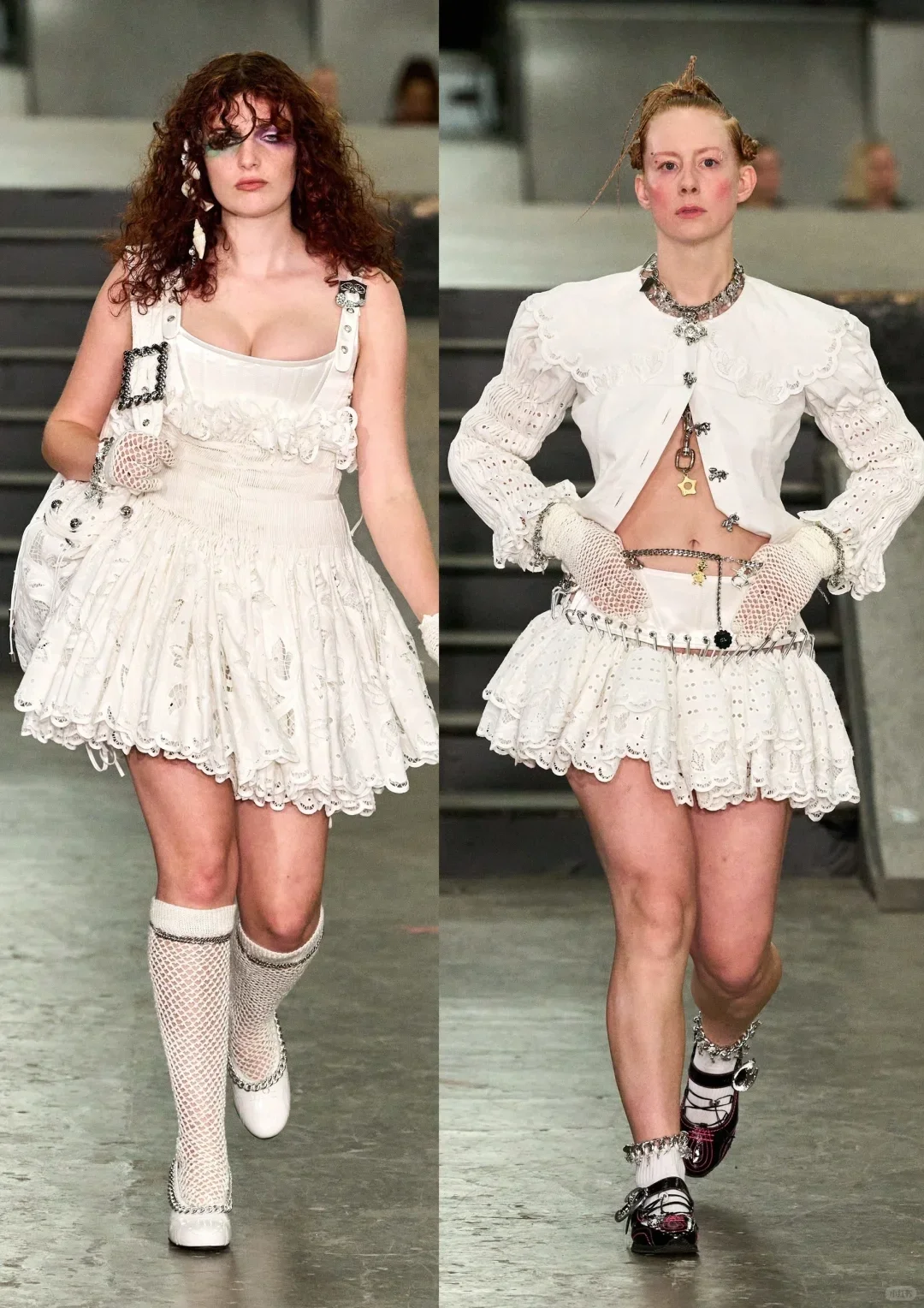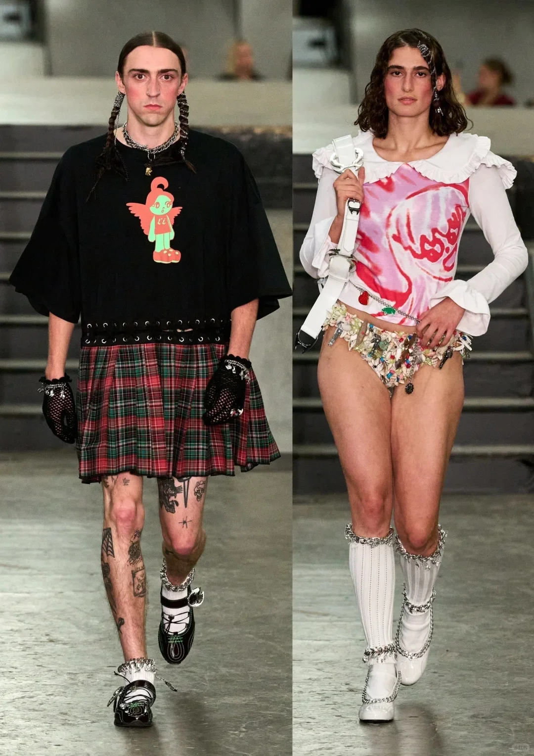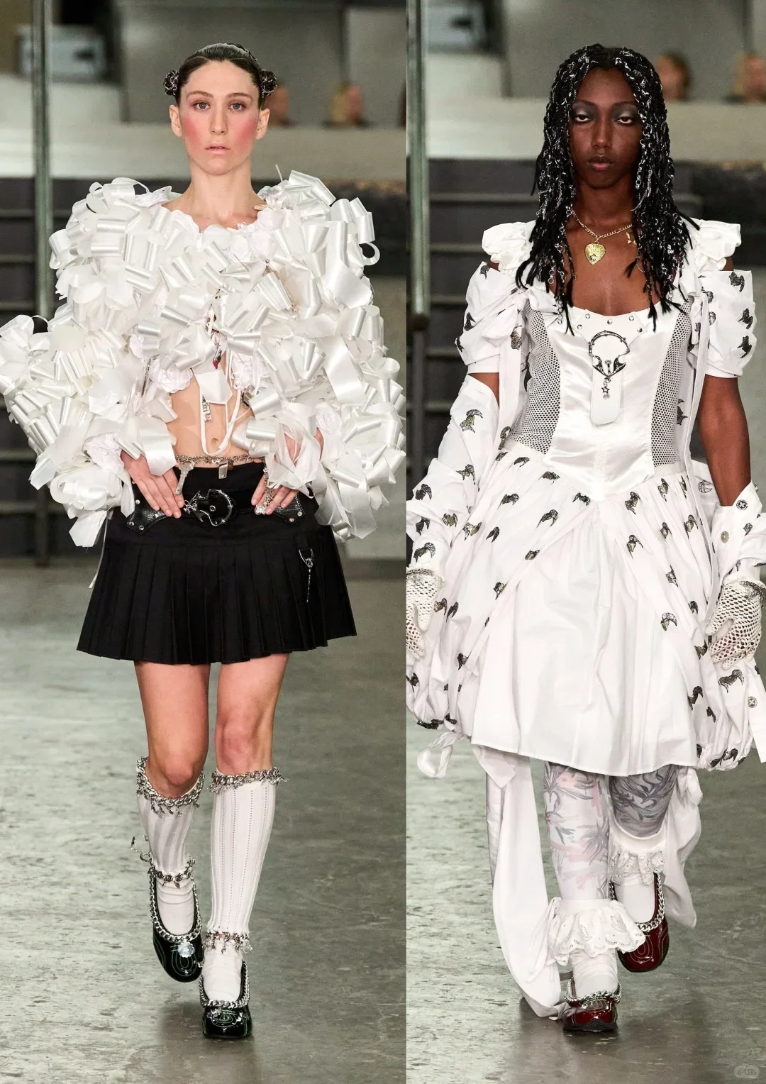 慢点长大这个世界不缺大人 千禧辣妹 Chopova Lowena 2024 SS 系列, 运用苏格兰短裙,格纹和超宽皮带等将朋克和摇滚元素融入设计,呈现90 年代垃圾摇滚和朋克文化,