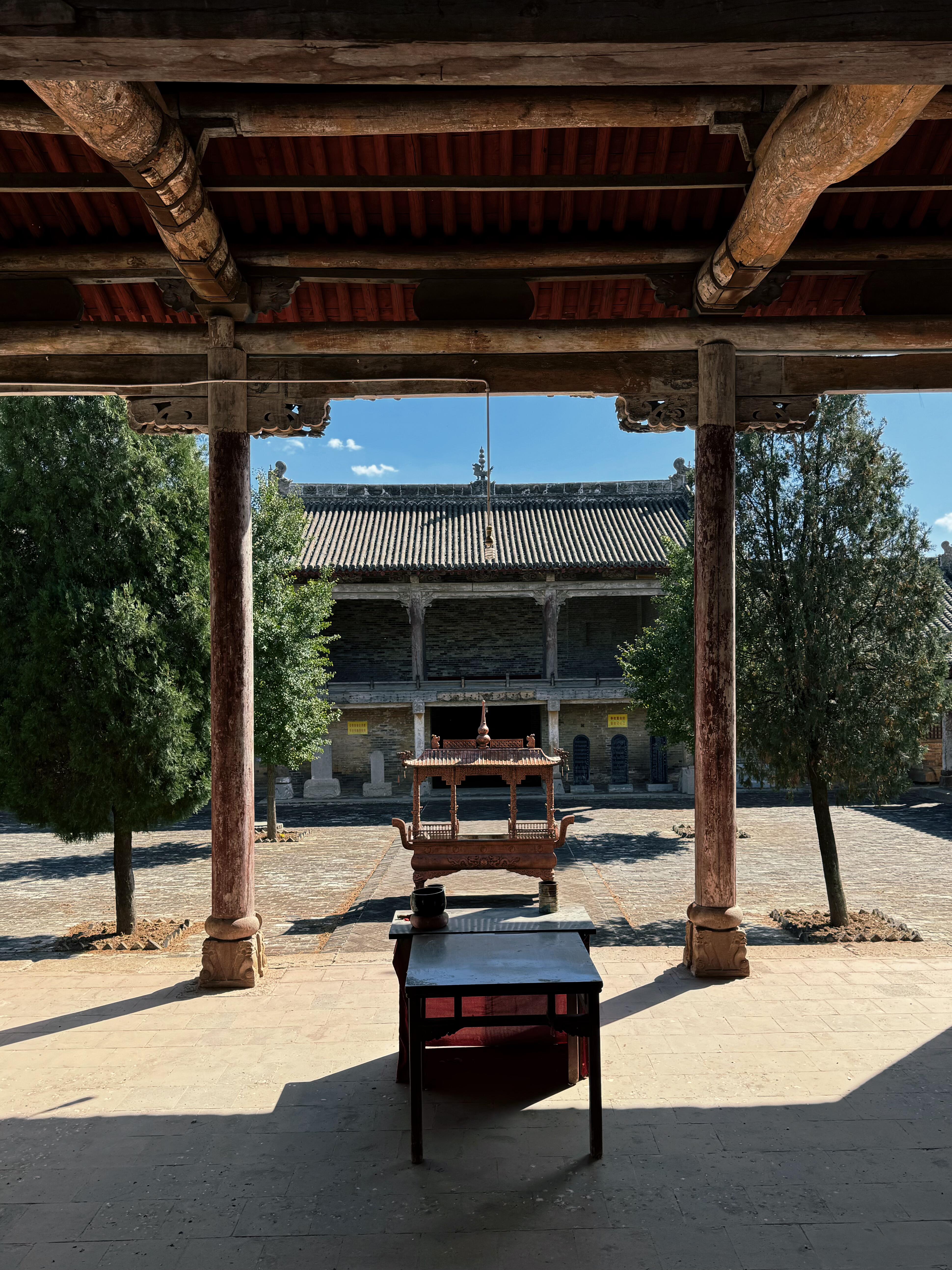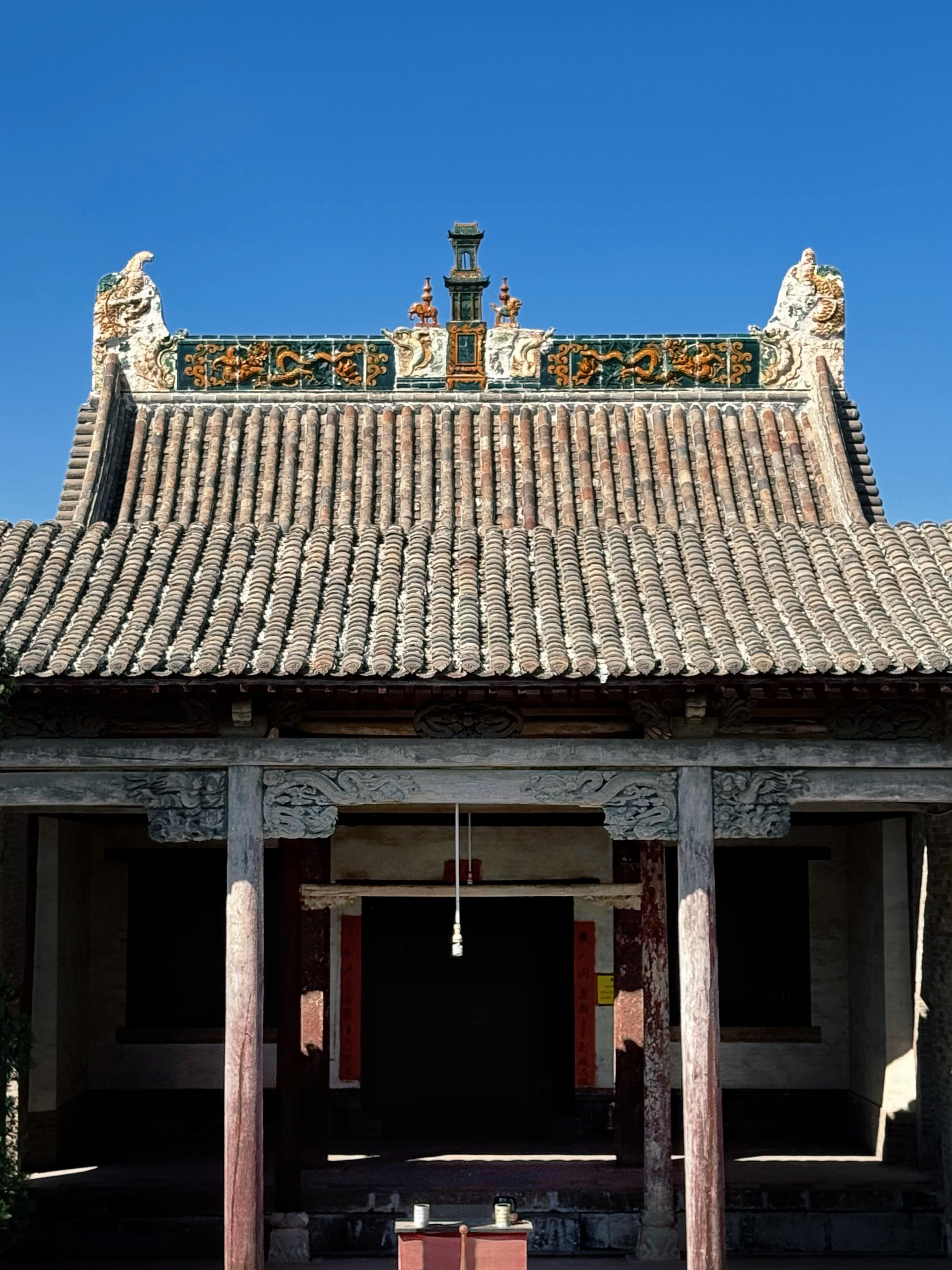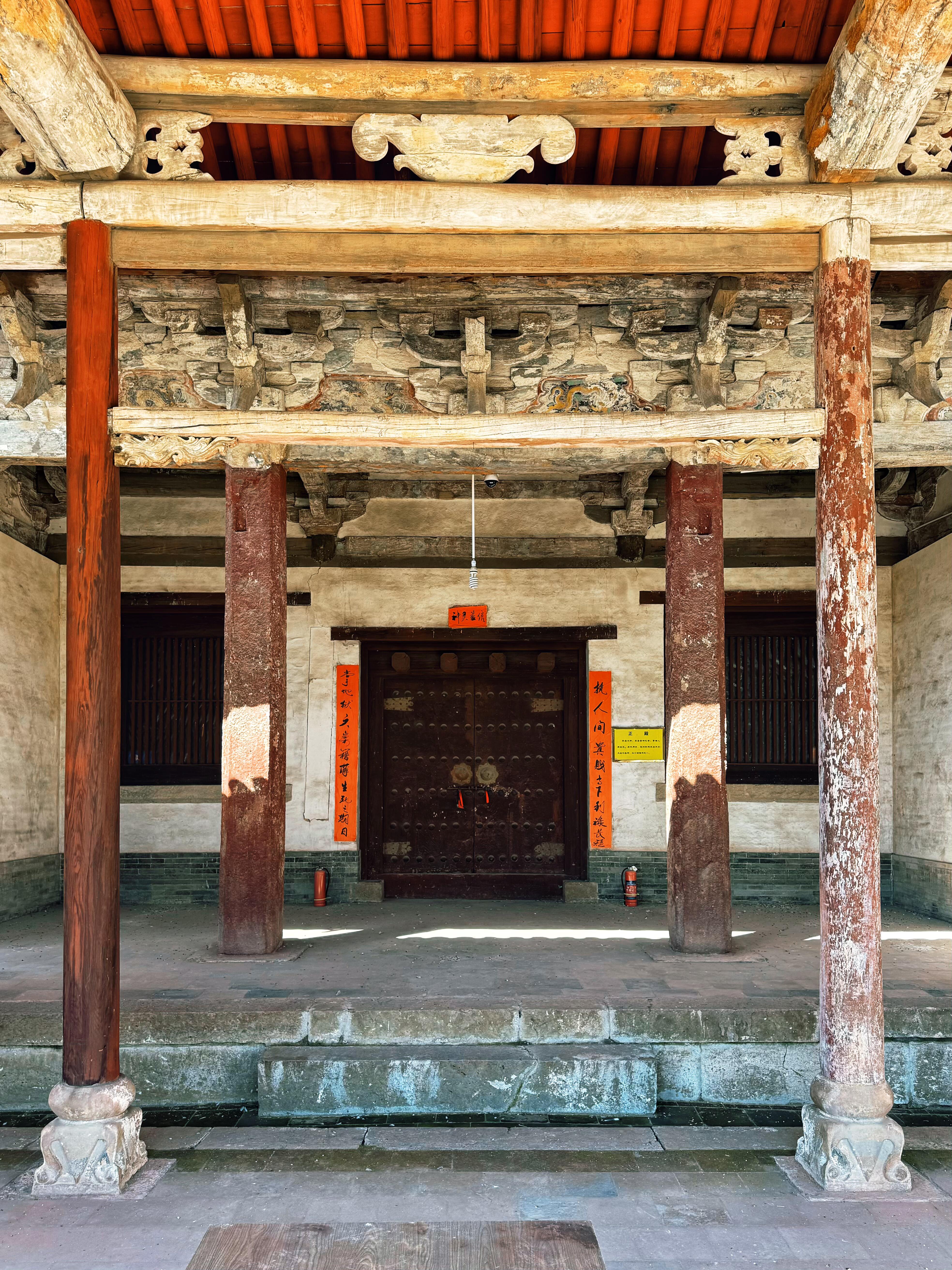 穿过山门,便能看到献殿。献殿建于清乾隆三十五年,它与正殿紧密相连,形成了一个有机的整体。献殿面宽三间,进深五椽,单檐卷蓬硬山顶的设计与山门的庄重形成了鲜明的对比,多了几分柔和与质朴。檐柱柱头设置的雀替、阑额和普拍枋,虽没有斗拱的华丽装饰,却也以简洁大方的风格展现出别样的韵味。看着这些构件,不禁让人好奇,在当时的建筑语境下,为何舍去了斗拱这一传统建筑中常见的装饰元素?有人推测,这可能是因为献殿的功能性需求,不需要过多的装饰来突出其地位,而简洁的设计更能满足祭祀等活动的实用需求;但也有人持不同意见,认为这或许是当时建筑风格转变的一个体现,清乾隆时期流行更加简约的建筑美学,所以在献殿的建造上也有所体现。