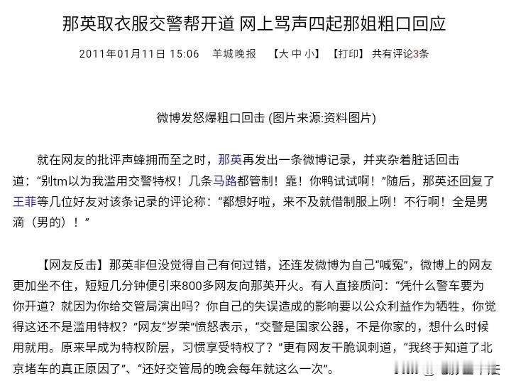 10,2011年那英参加北京交管局春晚,事后发文称是🚓开道帮她回家拿演出礼服的,还说🚓这时不用啥时用啊!事后证明那英是吹牛,童话大王郑渊洁以警风监督员的身份确认警方只是派了车,但并没有🚓开道。