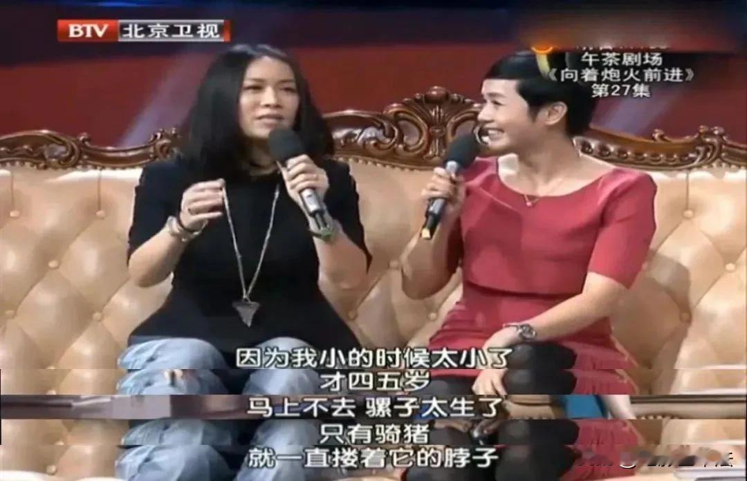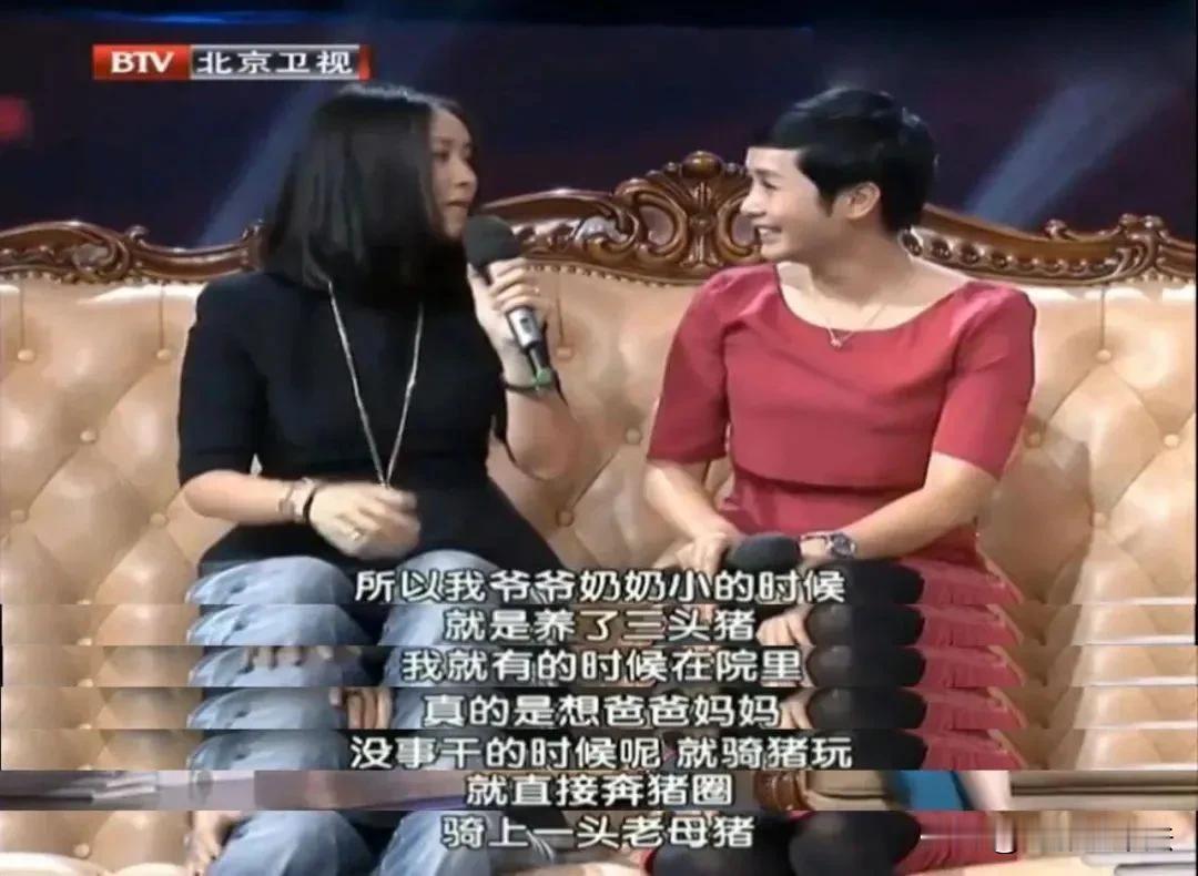 1,那英小时候跟着爷爷奶奶在沈阳农村生活,非常调皮,无聊的时候或者想爸爸妈妈的时候就骑大母猪玩。家里还有马和骡子,为什么不骑马和骡子,因为马上不去,骡子太生,只能欺负母猪。