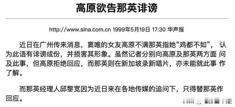 9,那英曾经指责窦唯的女友高原“鸡都不如”,高原马上准备起诉,最后那英经纪人邱黎宽出面调停,以一句“鸡是很神圣的动物”平息了高原的怒火。