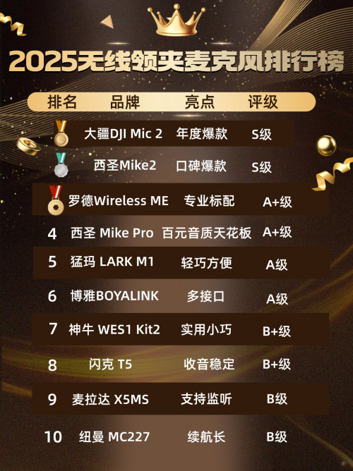在短视频和直播盛行的今天,声音表现已经成为创作者内容能否吸引观众的关键因素。一款优秀的无线领夹麦克风,能够让画面与声音相得益彰,从而提升作品的专业感。但市面产品繁多,音质、续航与信号稳定性参差不齐,常让人挑花眼。为此,这里整理了10款目前热度与口碑都不错的型号,涵盖入门到中高端不同档位,供大家参考。