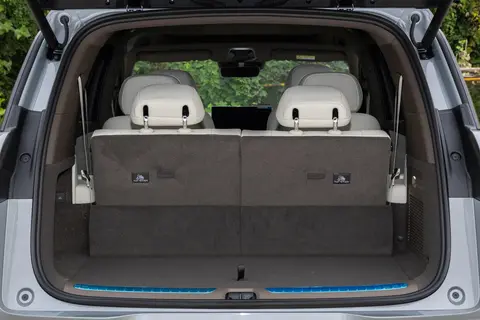 拉开车门,才能真正理解腾势N8L在空间规划上的用心。官方称其“套内面积”达到6.11平方米,人均超过1平方米,车内垂直高度超过1.3米。实际体验中,即使身高1.8米的成年人坐在第三排,头部和腿部空间都相当充裕,这得益于第三排座椅支持100毫米前后滑移和121度靠背角度调节。与传统SUV第三排只是应急座位的设定不同,N8L的第三排同样配备了座椅加热和独立出风口,甚至还有专属的帝瓦雷音响扬声器,真正实现了“三排一样大,座座都宽敞”的设计目标。