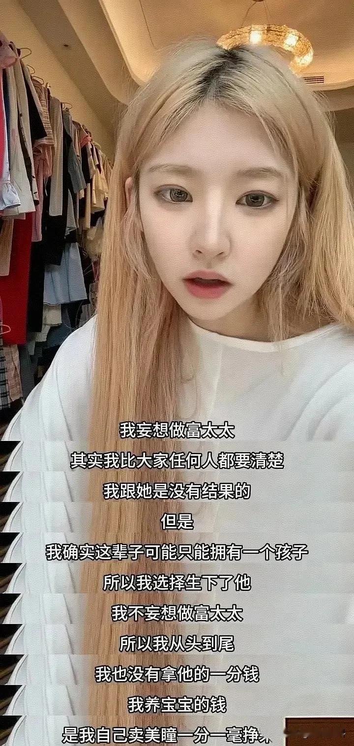 黄一鸣这波操作会不会拿下王思聪? 黄一鸣一开始夸王思聪又帅又有钱[呲牙]话里话外为他生孩子觉得挺光荣的! 被网友质疑后又出来回应,留下孩子是自己身体原因,本不想爆料是喝大了情绪崩溃才说出来,也没想要当富太太,自己能把孩子养大! 看来这美女有意立不靠男人的人设,王思聪是不是被打动了?一开始还回怼发酒疯! 现在不说了,还去买一堆童装,这是要认娃的节奏吗? 话说,黄一鸣这一爆料流量绝对有了,王思聪好像也心软了,会不会母凭子贵俩人再续前缘也不好说,拭目以待吧!