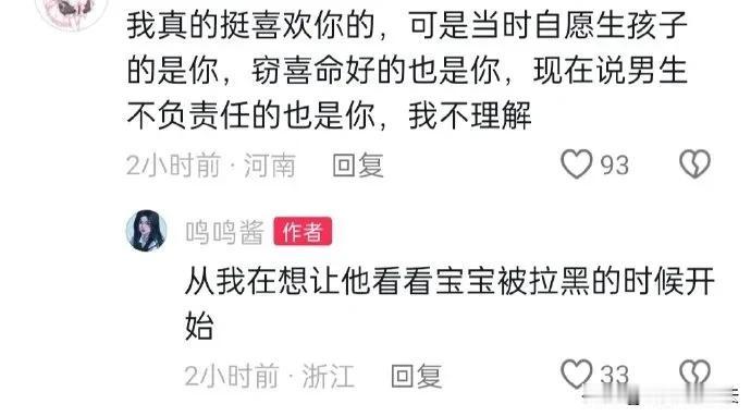 黄一鸣说自己本来不想生,但因为这可能是她这辈子唯一一个孩子,才最终决定生下来。