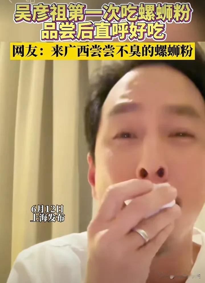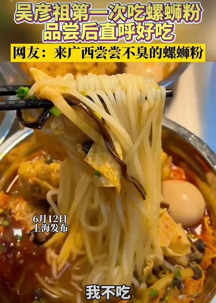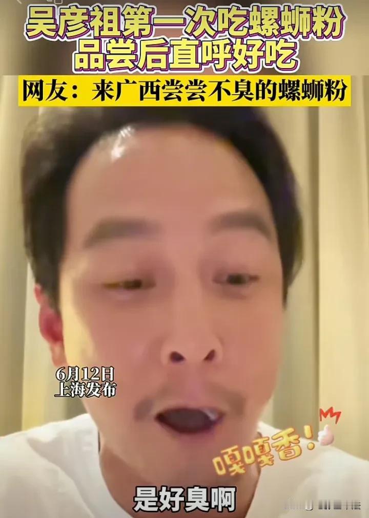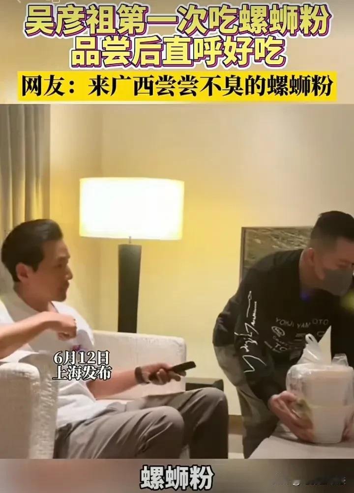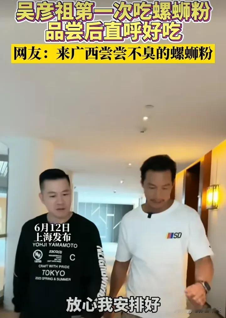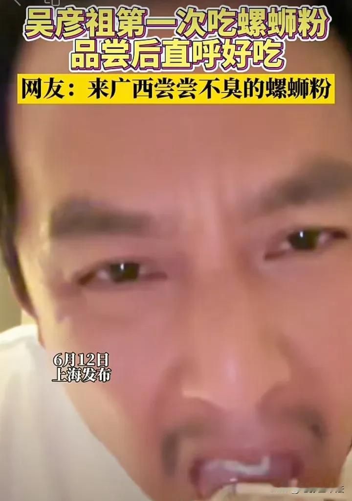 6月12日,吴彦祖在上海发布朋友请他吃螺蛳粉的视频,上海吴彦祖边吃边笑,直呼好臭,好辣,但是好吃,而他的朋友在旁边用不可思议的语气直呼:不是吧?你慢慢吃吧,我不吃!