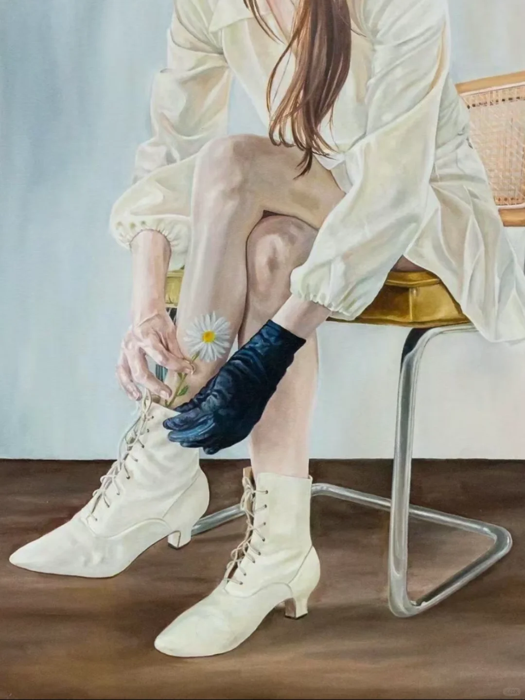 ⛓ Noelia Towers是一位在巴塞罗那出生和长大的芝加哥艺术家。Towers的画作采用写实风格,她的图像是通过拍摄自己的照片而创作的,并提及了统治和顺从的做法。她选择的主题展示了亲密、信任和爱的力量,并涉及更大的哲学困境。🎭