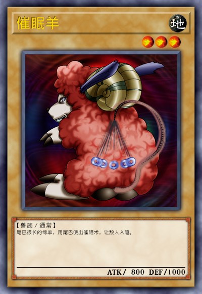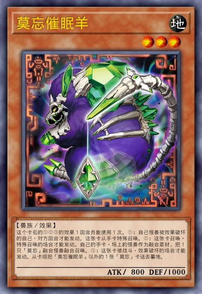 莫忘催眠羊原型3星白板催眠羊,其效果怪兽被效破时特招自己,召唤特招成功时进行本家融合以及战破效破时送墓本家卡。