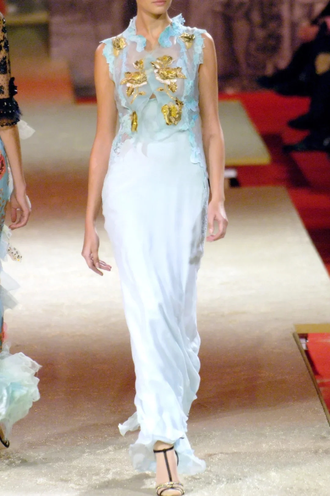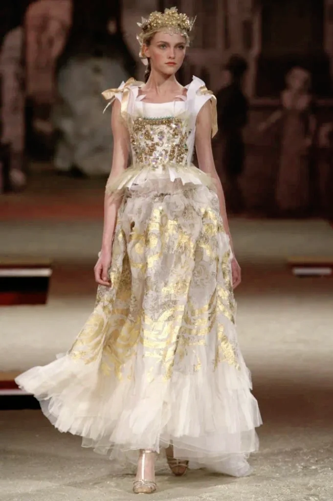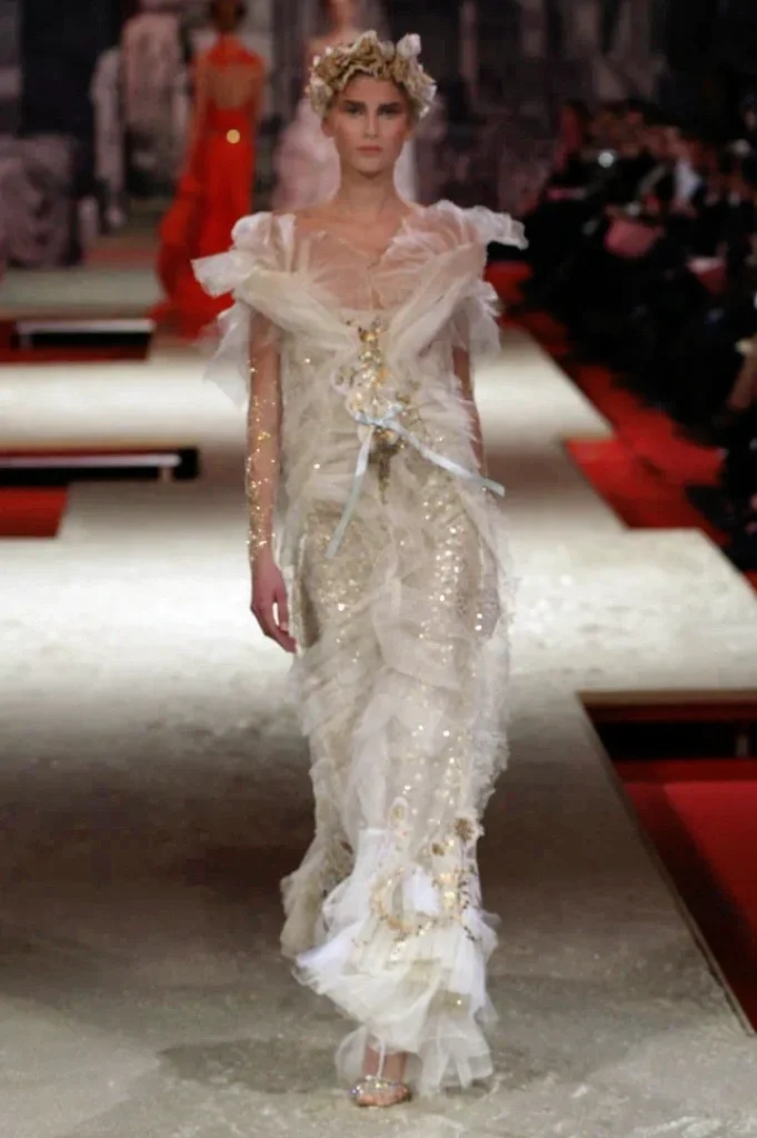 名为夏天的绿色 Christian Lacroix Fall Winter 2005 Haute Couture 主题为梦回普罗旺斯, 秀场如一个巨大的法式花园, 服装虽然色彩纷杂, 但却不会令人眼花缭乱,失去重点。