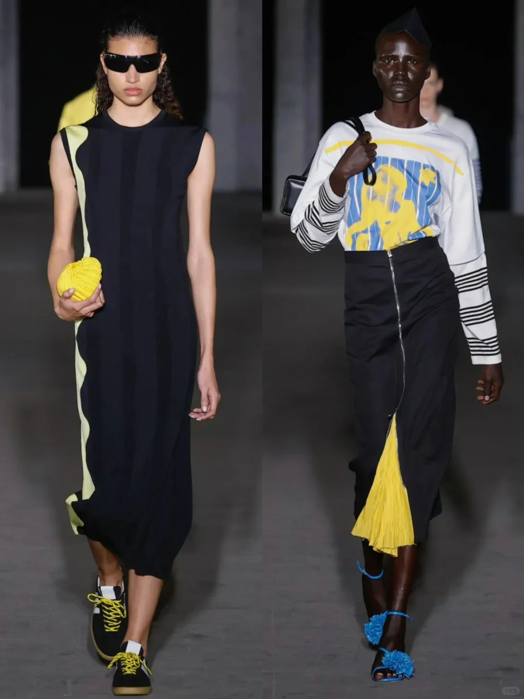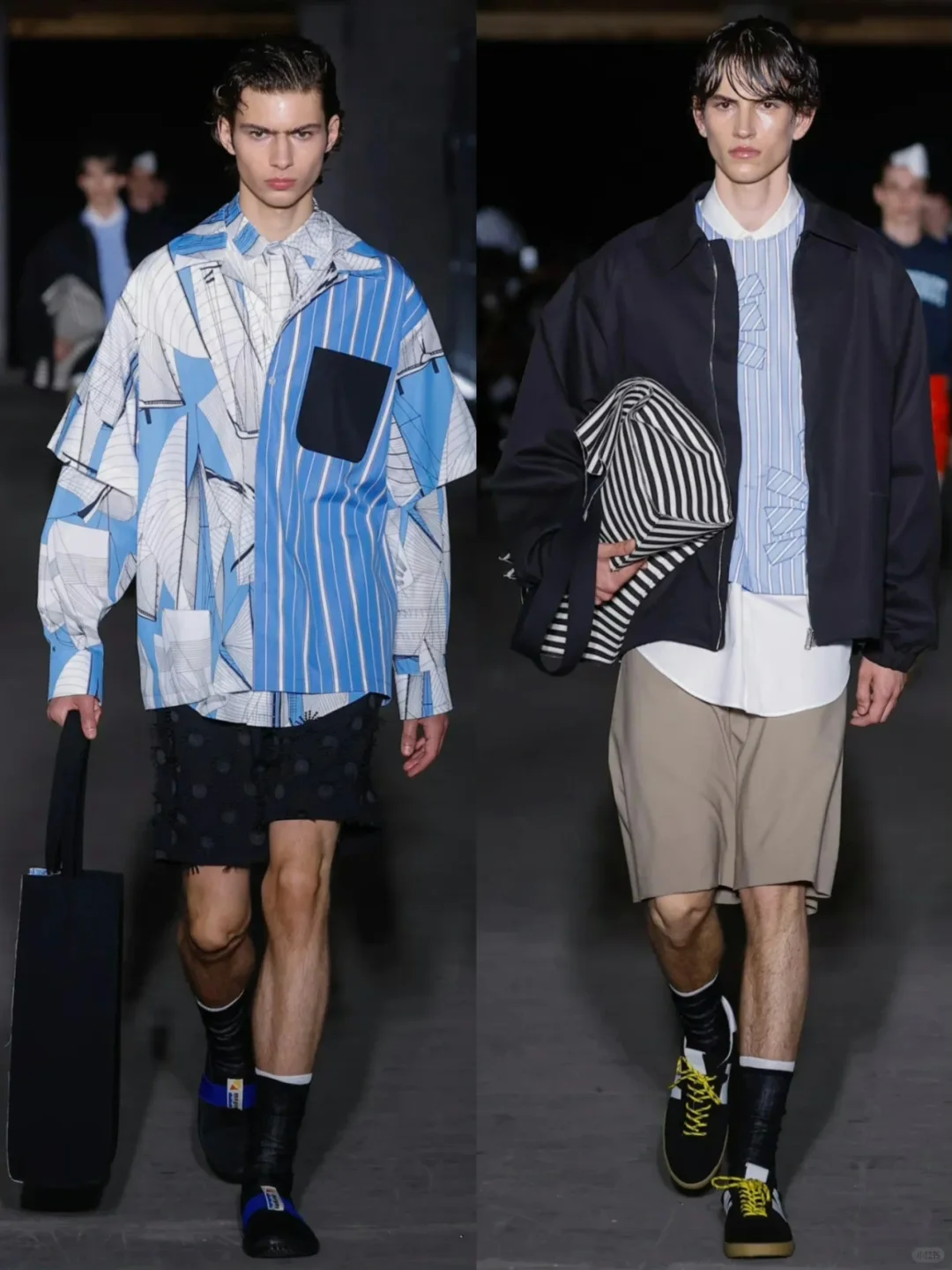 在色彩运用方面,设计师巧妙结合了鲜艳的原色、宁静的蓝色以及MSGM品牌特有的酸性色调,创造出一系列视觉冲击力极强的作品。