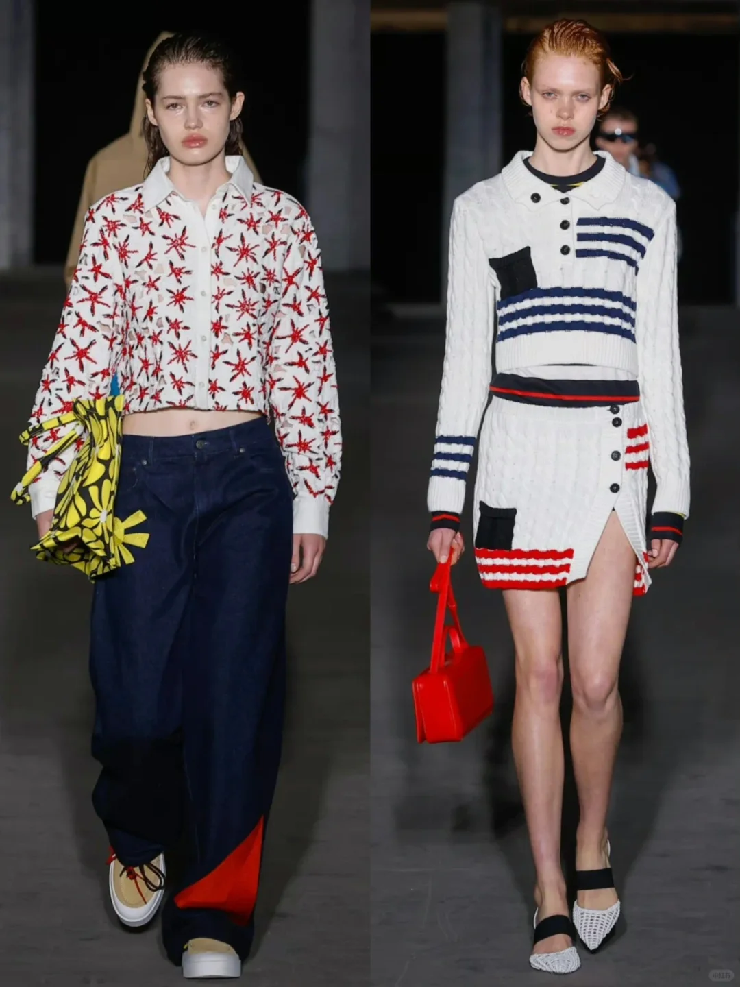 图中不仅呈现了经典的马里涅尔条纹,还展示了帆船、螃蟹及海豚等海洋元素作为印花图案,完美捕捉了轻松愉悦的夏日氛围。