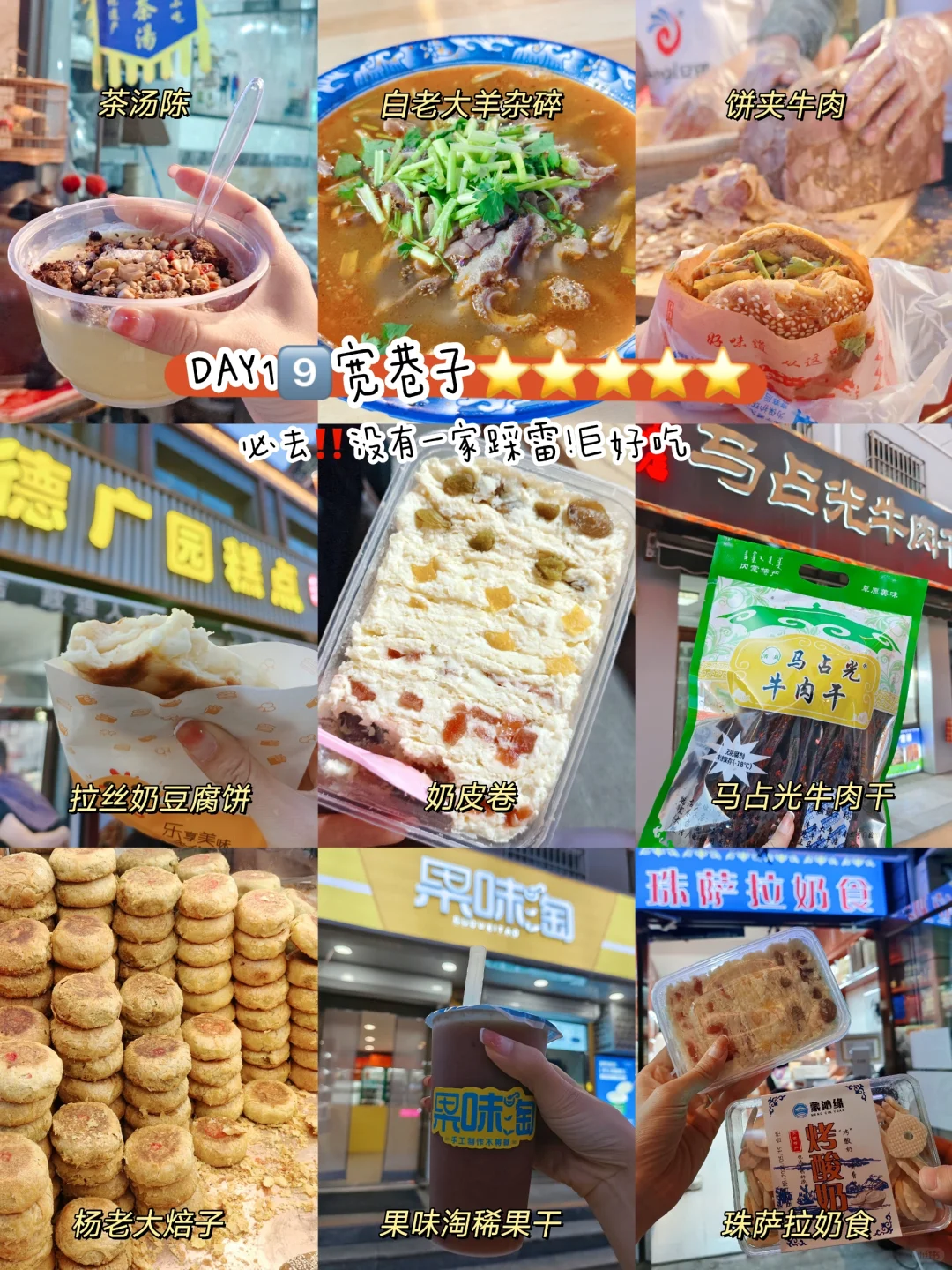 👍🏻力荐:马占光牛肉干、果味淘稀果干、茶汤陈、德广园的拉丝奶酪豆腐饼、白老大羊杂碎、酱牛肉夹饼、珠萨拉奶食、杨老大焙子,都好吃一定要吃!