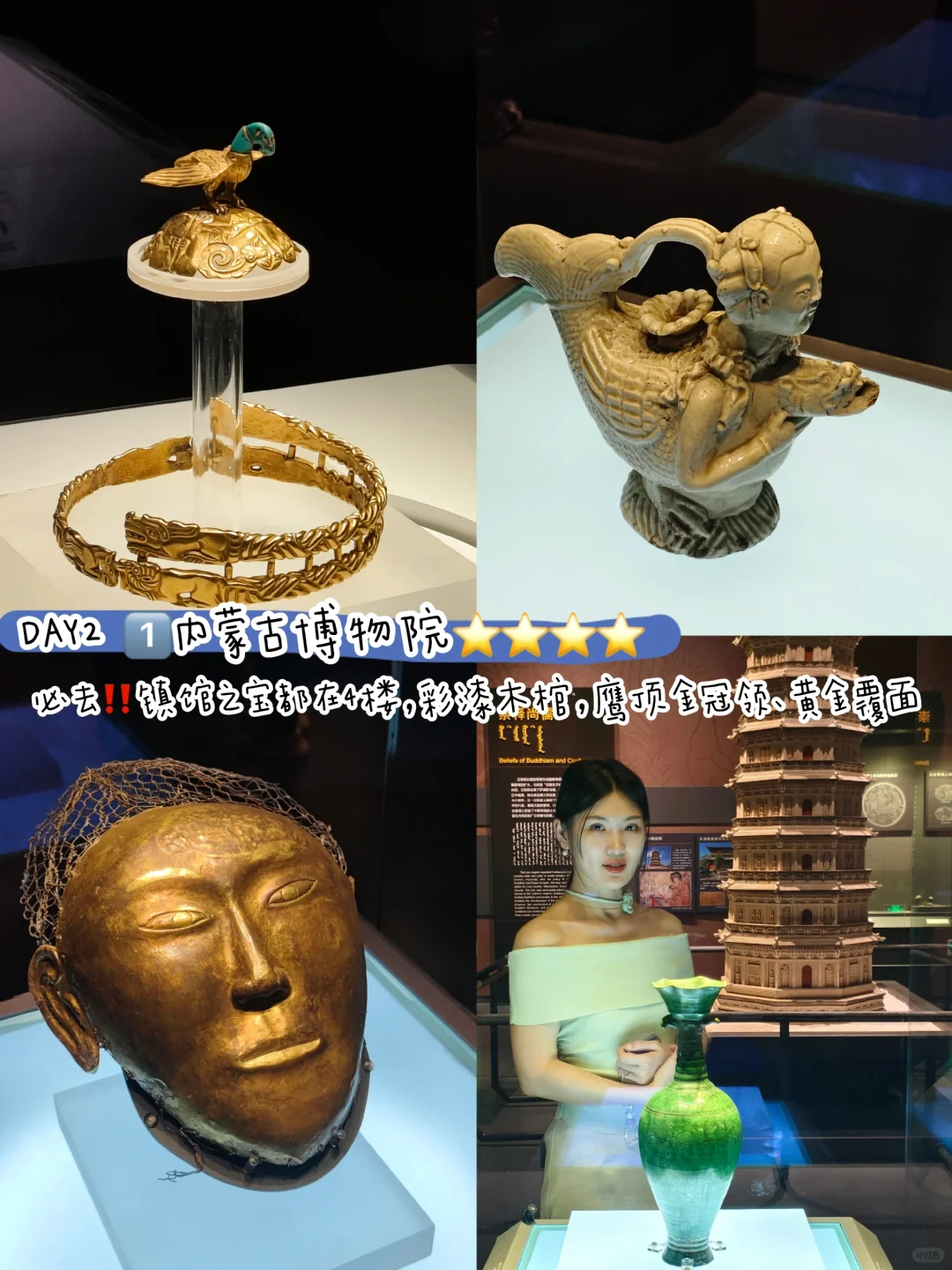 必去‼️镇馆之宝都在4楼,辽彩漆木棺,匈奴鹰顶金冠领、黄金覆面一定要看