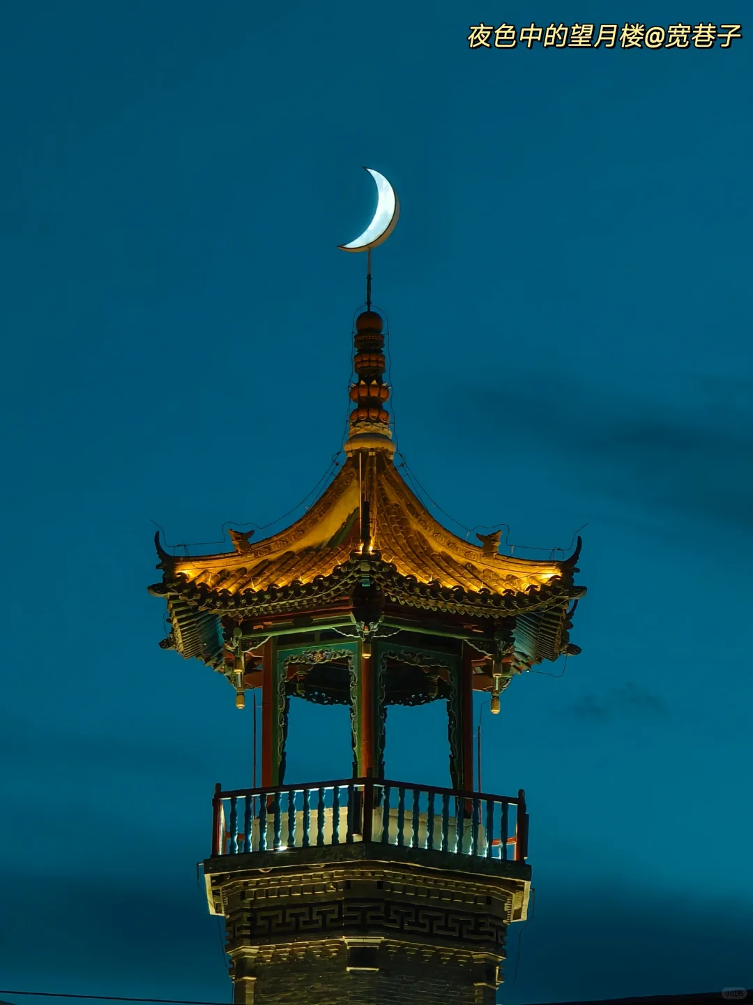 必去‼️蓝绿屋顶很特别!入夜后的望月楼很唯美
