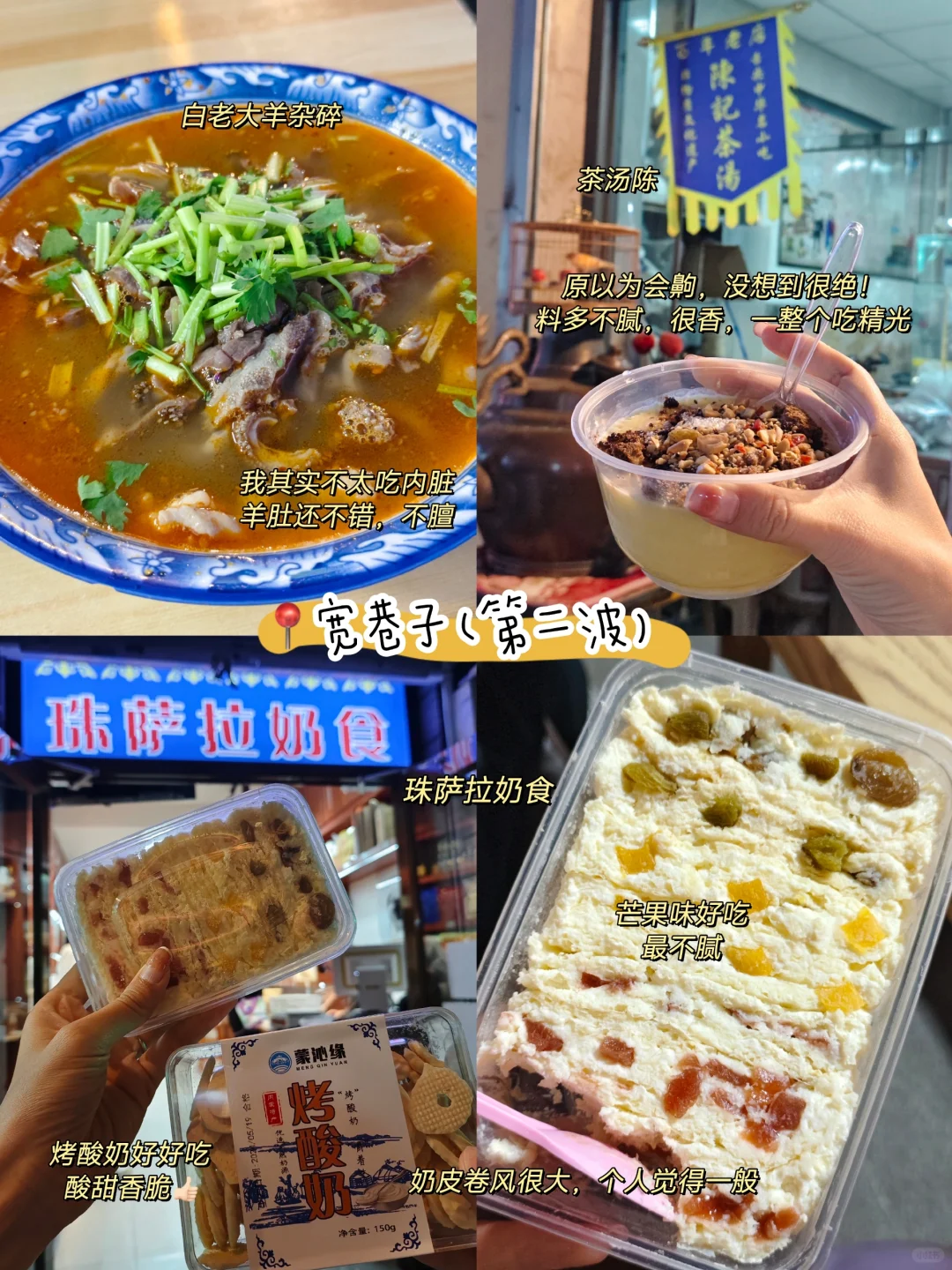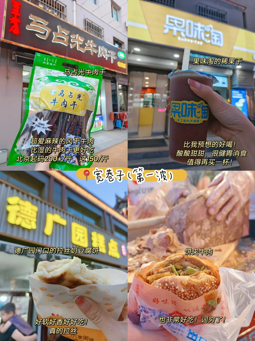 6/15北京来呼和浩特玩2天,吃了超多美食,不愧是奶制品和牛羊肉天堂,太好吃了!分享下美食攻略 - 🌈第一站📍席力图召 1⃣️额尔敦传统涮:💰109,我们去的小召寺店,牛羊肉都不膻,很好吃! 附近也有泽成冰煮羊、老绥远烧麦、格尔勒阿妈蒙餐 2⃣️罕乌拉奶食:💰8,顺手买瓶沙棘酸奶,酸上加酸,猎奇 - 🌈第2站📍宽巷子 1⃣️马占光牛肉干:💰100,超爱麻辣的风干牛肉,比湿的牛肉干更好吃,北京起码200+/斤,这里150/斤 2⃣️果味淘稀果干:💰3.99,dp有团,比我预想的好喝!酸酸甜甜,很很健胃消食,值得再买一杯! 3⃣️德广园门口的拉丝奶豆腐馅饼:💰8,可以拉丝!软乎乎奶香味好浓,爆好吃!排队人好多,值得排 4⃣️饼夹牛肉:💰12,往前走个50米,有家店现切牛肉,巨多人排队!牛肉版肉夹馍,好吃得不得了 5⃣️白老大羊杂碎:💰20,我其实不太吃内脏,羊肚还不错,不膻 6⃣️茶汤陈:💰10,原以为会齁,没想到很绝!料多不腻,很香,一整个吃精光,老板穿一背心在店门口喝茶遛鸟特老炮 7⃣️珠萨拉奶食:💰57.8,买了奶皮卷、手工酸奶、烤酸奶,奶皮卷很火但我觉得一般,略腻;手工酸奶原味不含糖,喜欢!烤酸奶好好吃,酸甜香脆 8⃣️王维烧烤:💰10,吃个花毛就走了,等位得1h果断放弃,羊肉串路边随便2-3块钱的都差不多 9⃣️杨老大焙子:💰9.3,甜焙子、红糖焙子、麻叶麻花都买了点,成吉思汗同款干粮哈哈哈,分量巨大,买一堆都不到10块钱 - 🌈第三站📍内蒙古博物院 1⃣️蒙源香奶茶馆:💰78,附近万达金街里,门面很小,dp收录10年,牛肉包好香,手抓羊沾辣椒超好吃,可以自选瘦点的肉,酸奶拌炒米百吃不腻,这家更赞!老板特老炮,爱跟食客闲聊 - 🌈第四站📍美居酒店 ✅寂寞的鸭子:💰46,酒店附近鸭货店,第一天买了点风干鸭脖,吃完惊叹并决定再买!回程前怒买50块鸭脖+鸭架+素菜,风干鸭脖最好吃,北京吃不到 - 🌈第五站📍48小时随身带 ✅茶口乐:每天吃超多肉食奶食嘴里容易有味道,我都随身带一支茶口乐,有很多种味道的茶叶含片,我最爱雨前龙井,真的有喝高级龙井茶的感觉,好清新!浙大研发很安心,而且好多明星都在吃,配料也很健康,0糖0脂0色素,每次大餐后我跟阿杜都会来一颗,又提神又清新口气,真的旅行必备 - 呼市实在是太好吃了!推荐大家去快乐吃喝