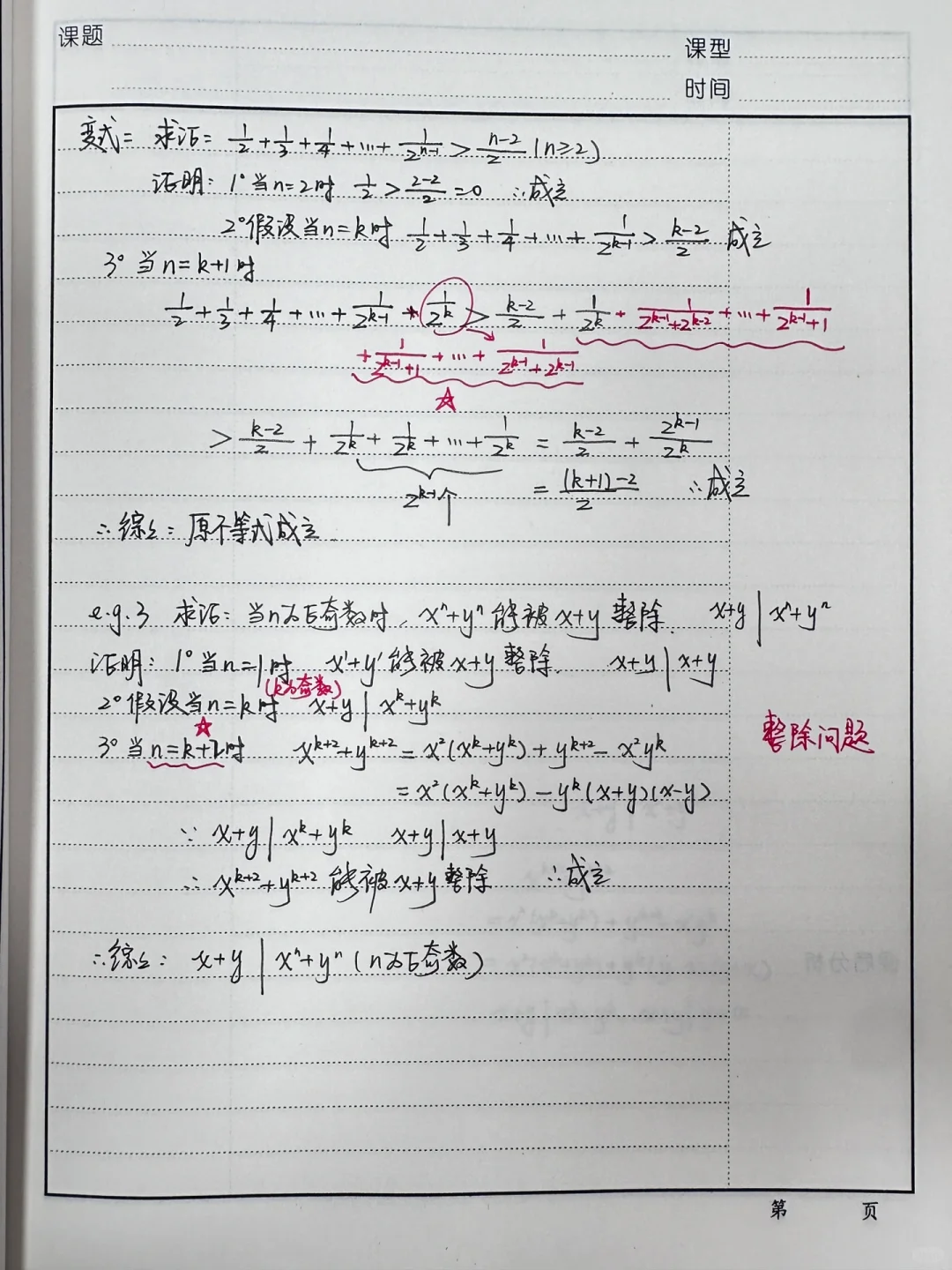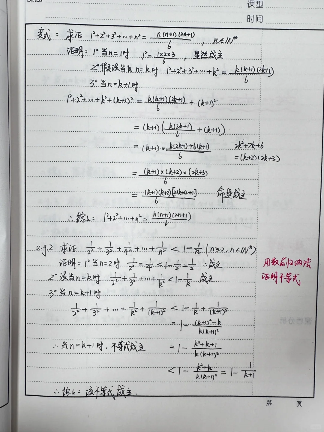 这周最后一次选修课,就按原计划讲一下数学归纳法吧,了解多米诺骨牌效应还是很容易理解这个证明方法的。很多时候数学归纳法在数列大题中常见,同学们会用到这个猜测与归纳大法。 课堂思路:逻辑基础-第一、第二数学归纳法-数列中应用-证明不等式-整除问题-总结。