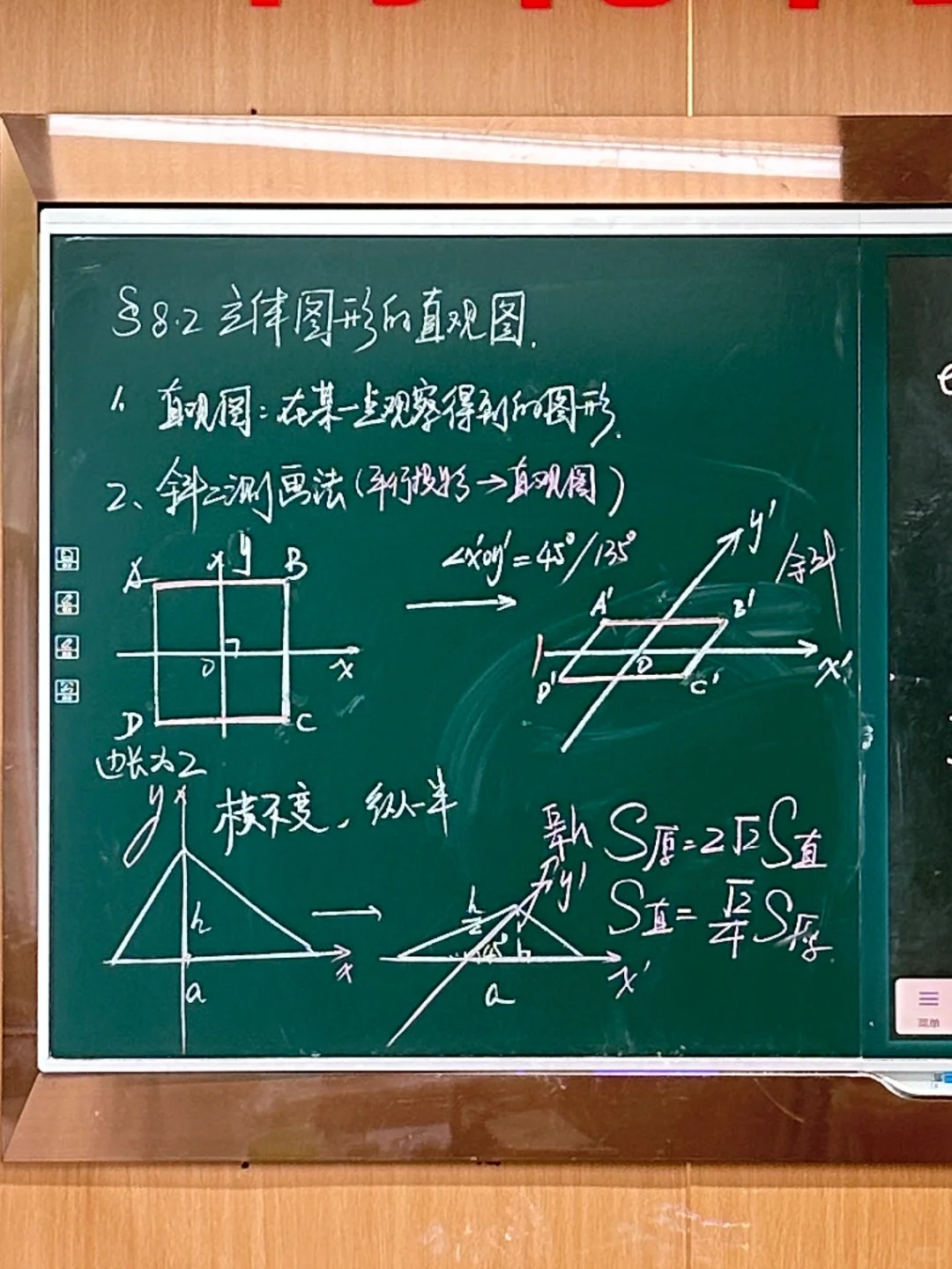 最近身心俱疲,因为有其他事情要忙,教学有点点点懈怠,当然也是因为立体几何变难了,画图难! 这一节的重难点就是斜二测画法,还是用到了ppt和GGB~