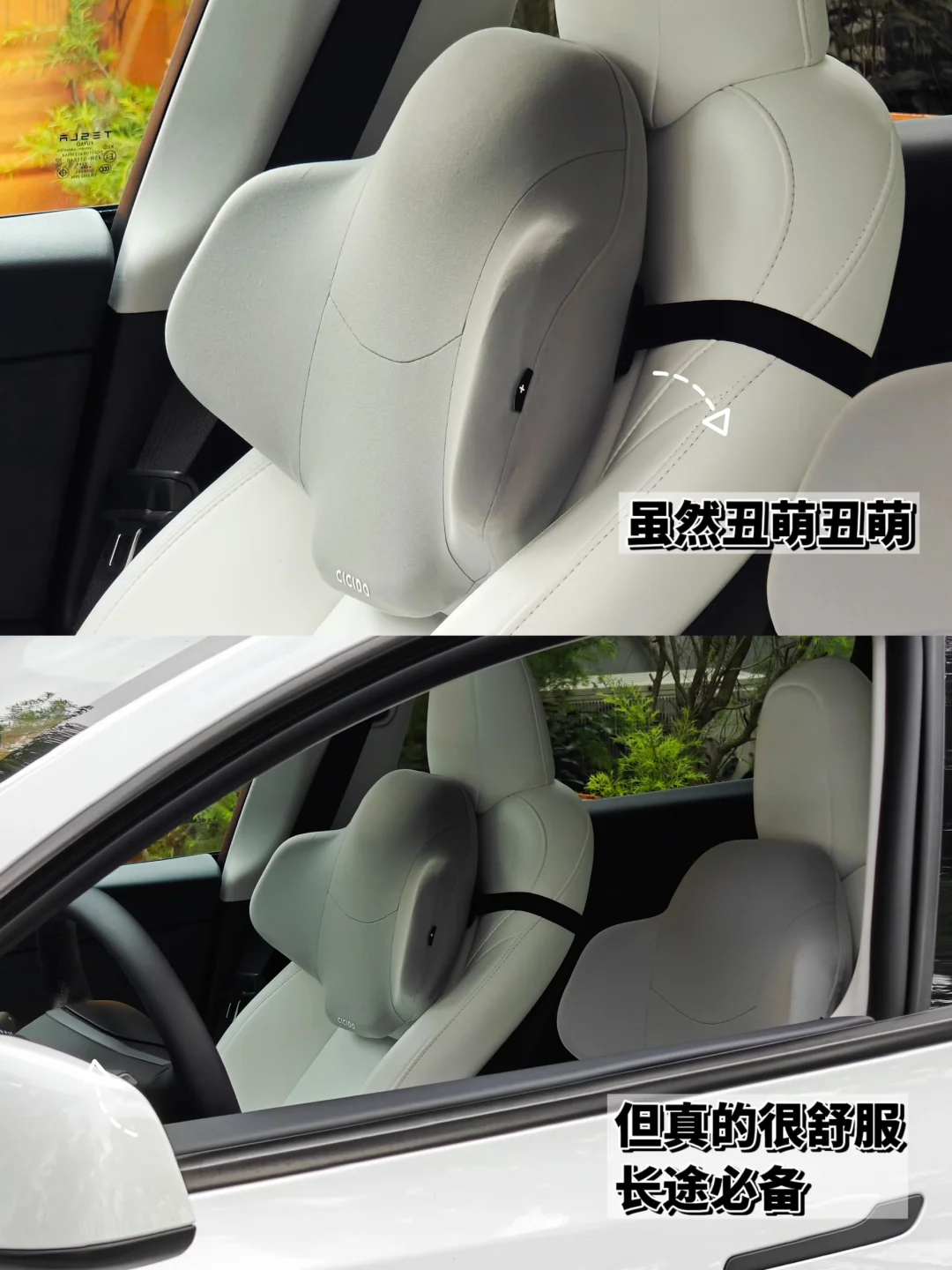 白内真的很难搭配头枕,这款是我试驾朋友的et5t被种草的,这款头枕能给肩部和颈部很好的支撑,否则长途驾驶悬空颈部真的很累很累。我一直在纠结是黑色还是灰色,也买了两个回来一起对比,最后留下了灰色。