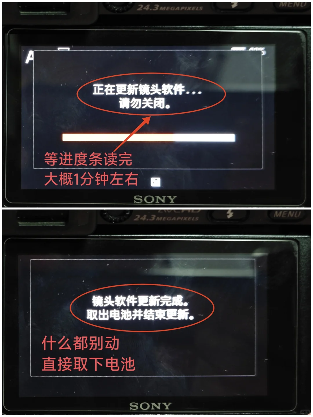 此时相机会显示更新镜头的进度条 如图7️⃣