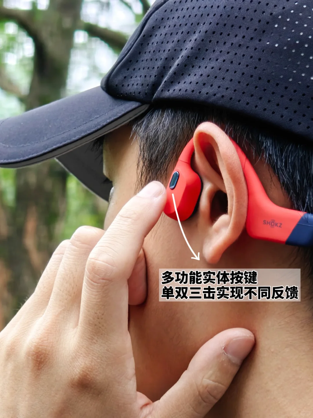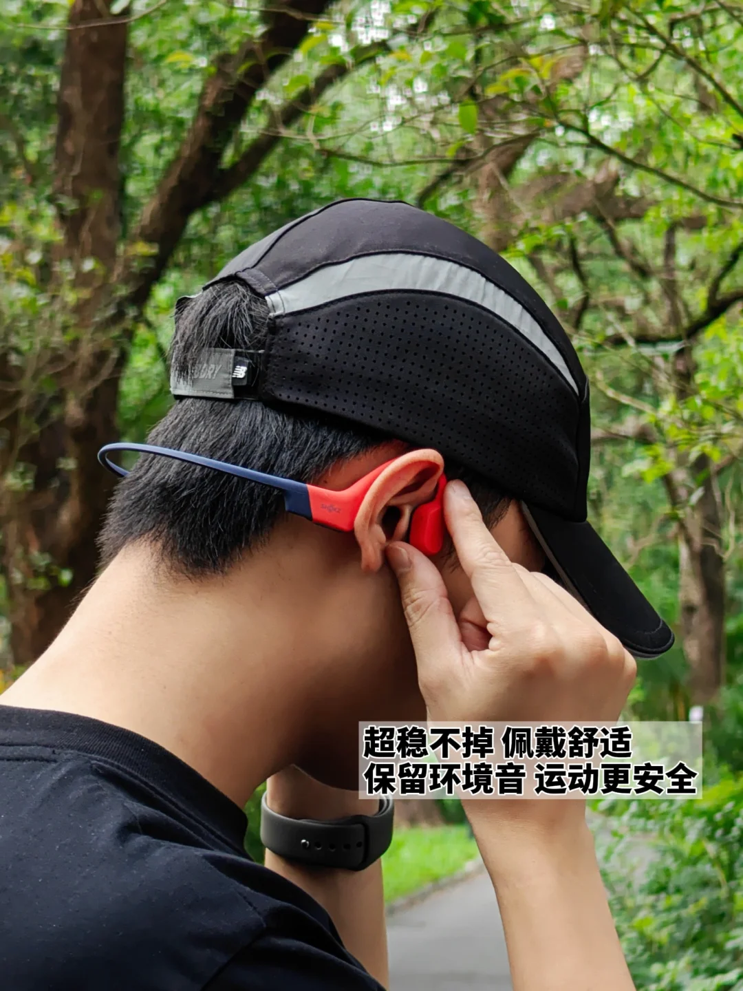 ◾铁人三项全都不在话下!不仅游泳时适用,对应跑步等剧烈运动时也能轻松应对。耳机通过耳挂+后挂的方式固定在头部,硅胶材质不磨皮肤,钛合金的骨架有弹性,耳机戴着很稳固,越野跑甚至游泳跳发都不会掉。同时骨传导耳机最大限度地保留了对环境的感知,因为耳蜗与外界没有任何阻挡,从而保证运动的安全性。