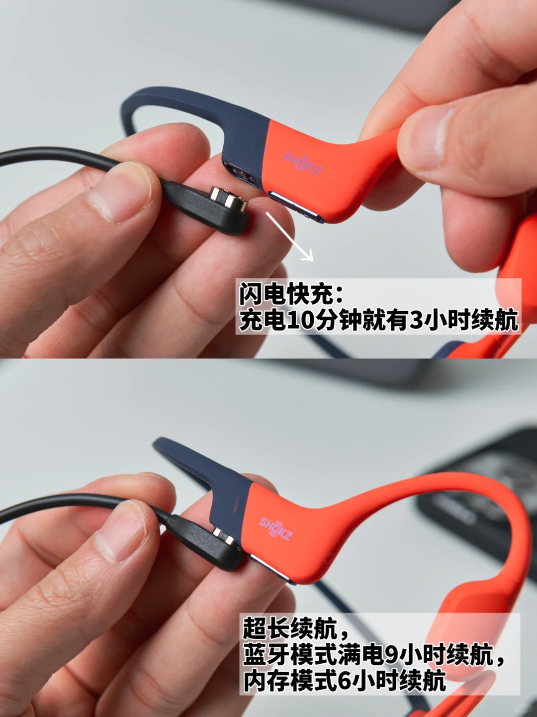 ◾至于续航方面,充电 10 分钟就有 3 小时的续航,蓝牙模式满电状态下跑 9 小时轻轻松松,内存模式也有6小时续航。对比部分耳机出仓即在线的状态,这款耳机在不听的时候可以关机,大大延长使用时长。