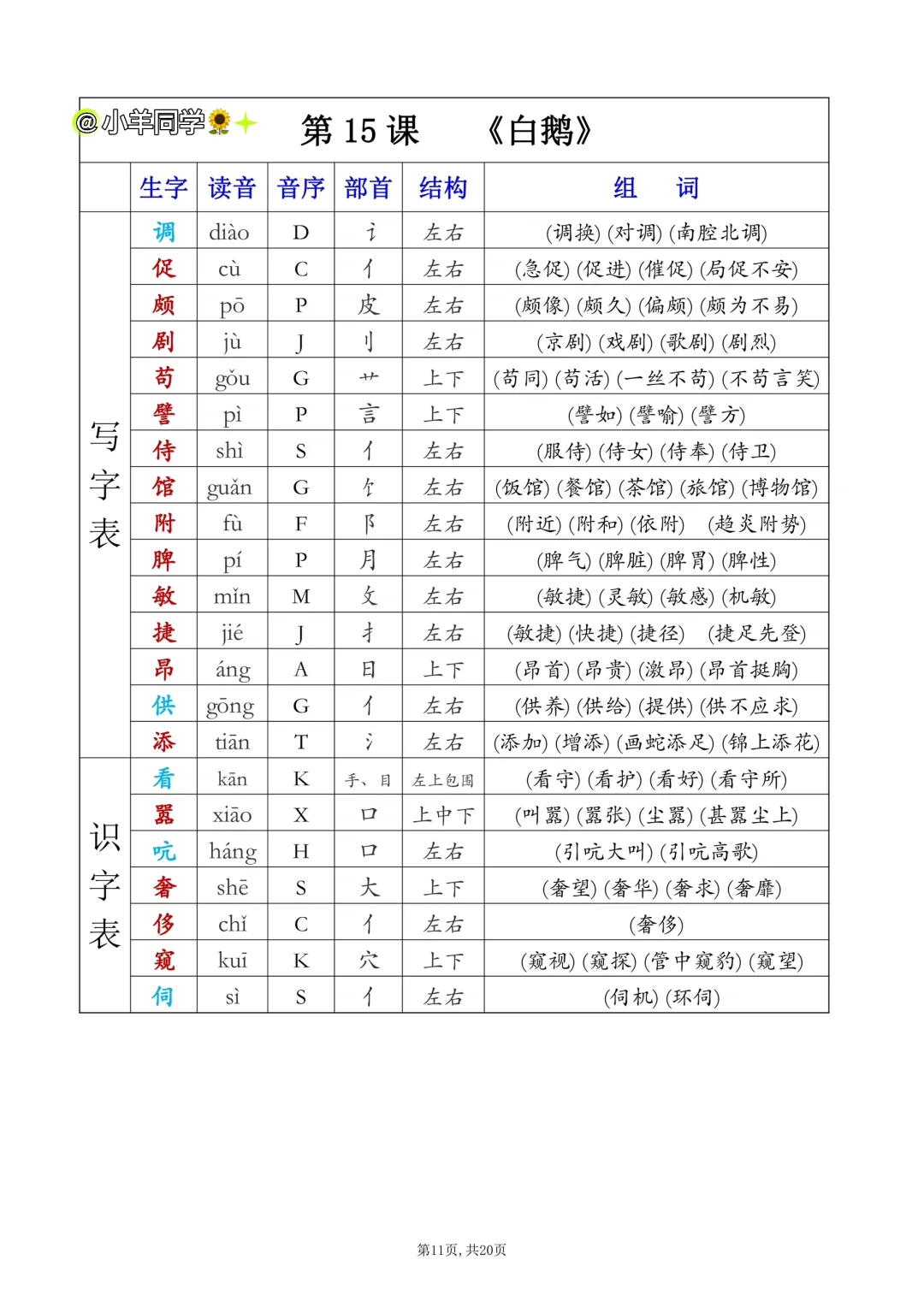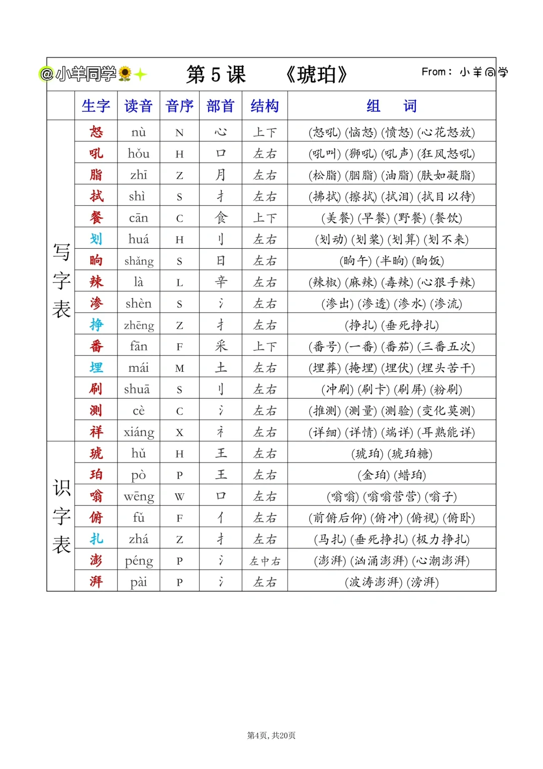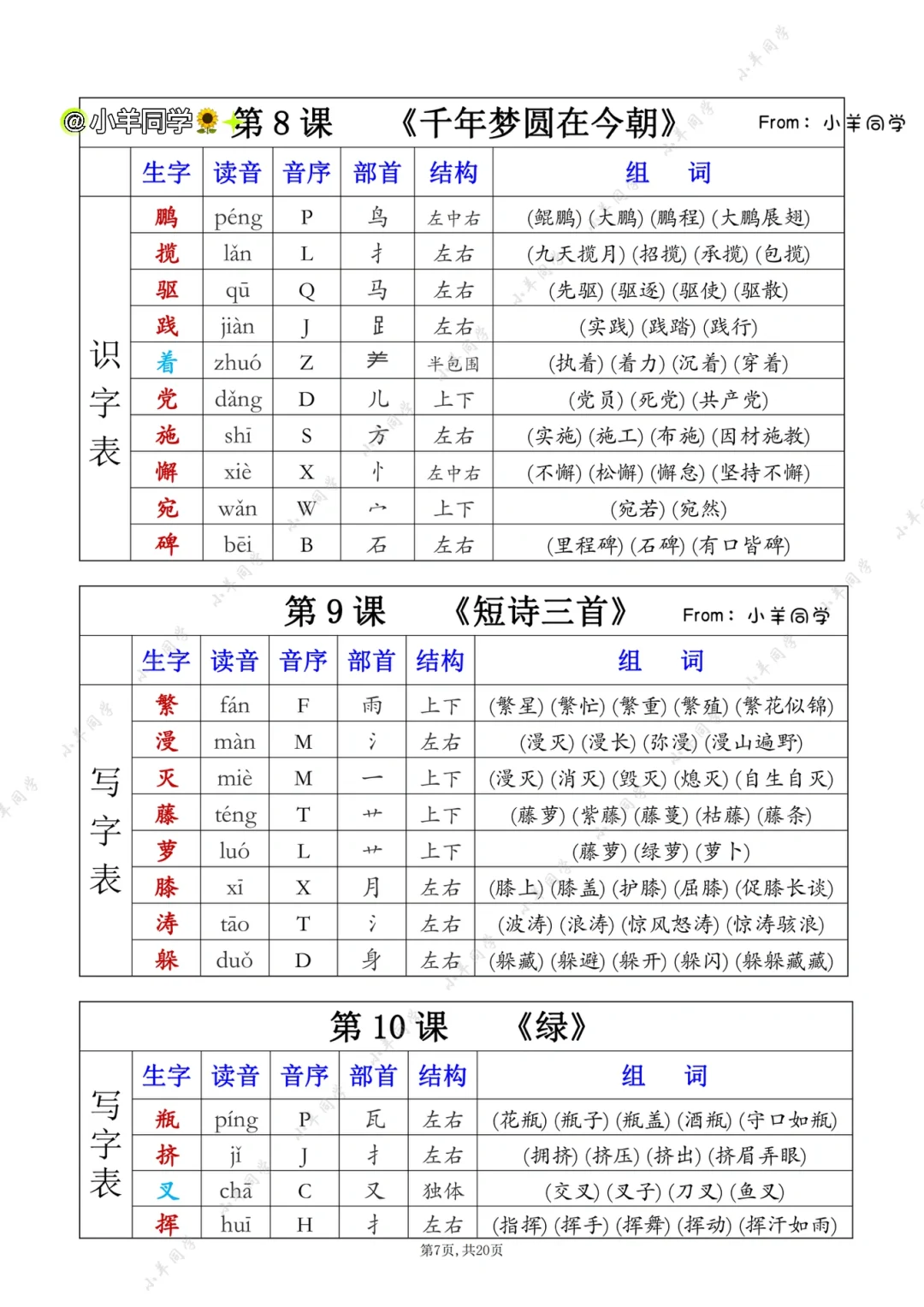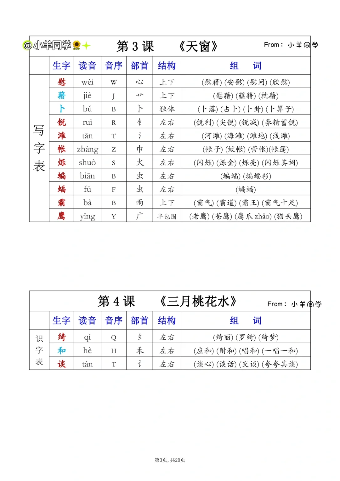 四年级下册✨课后生字表/识字表组词(一)