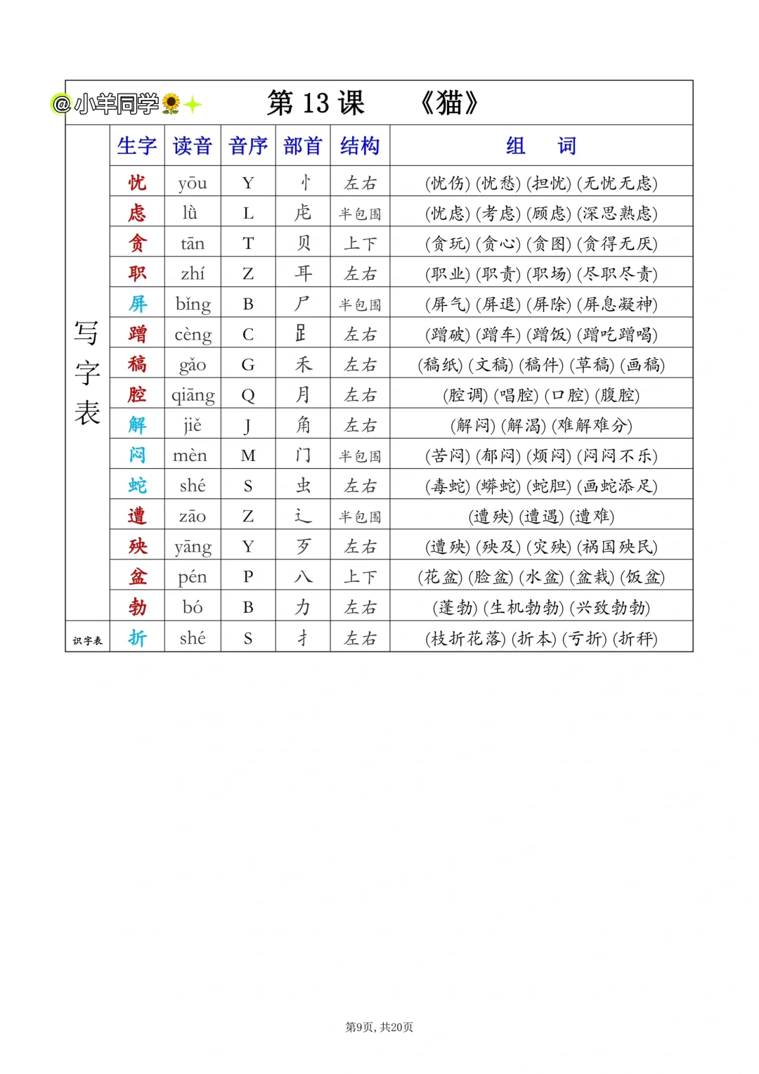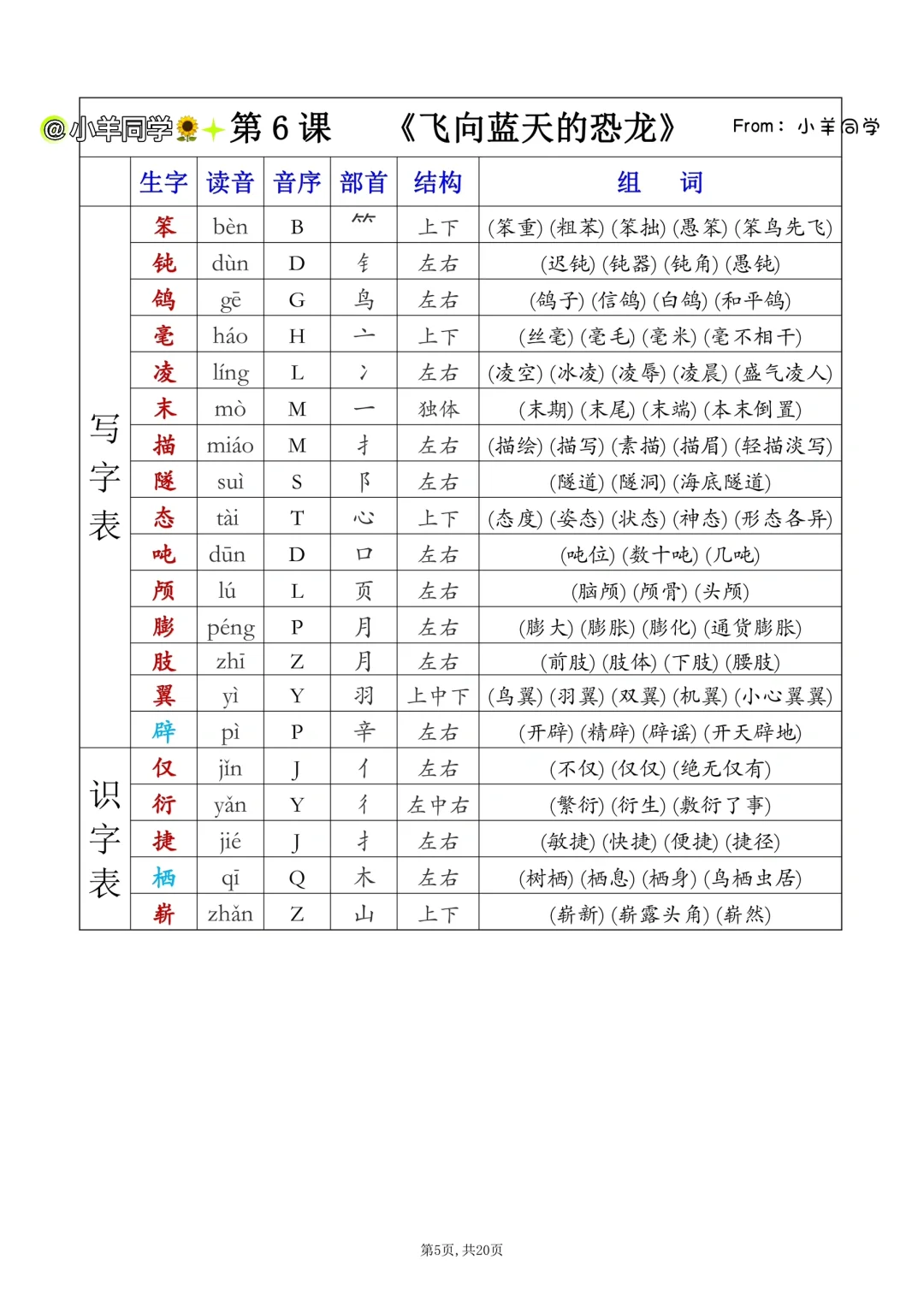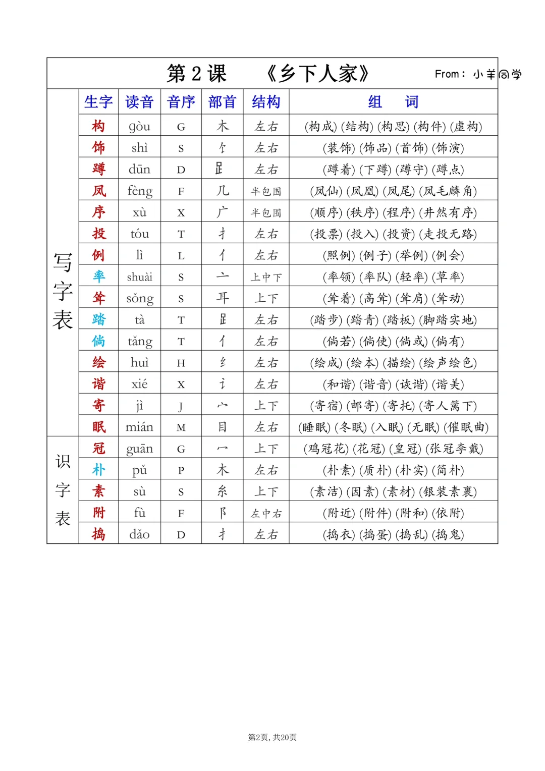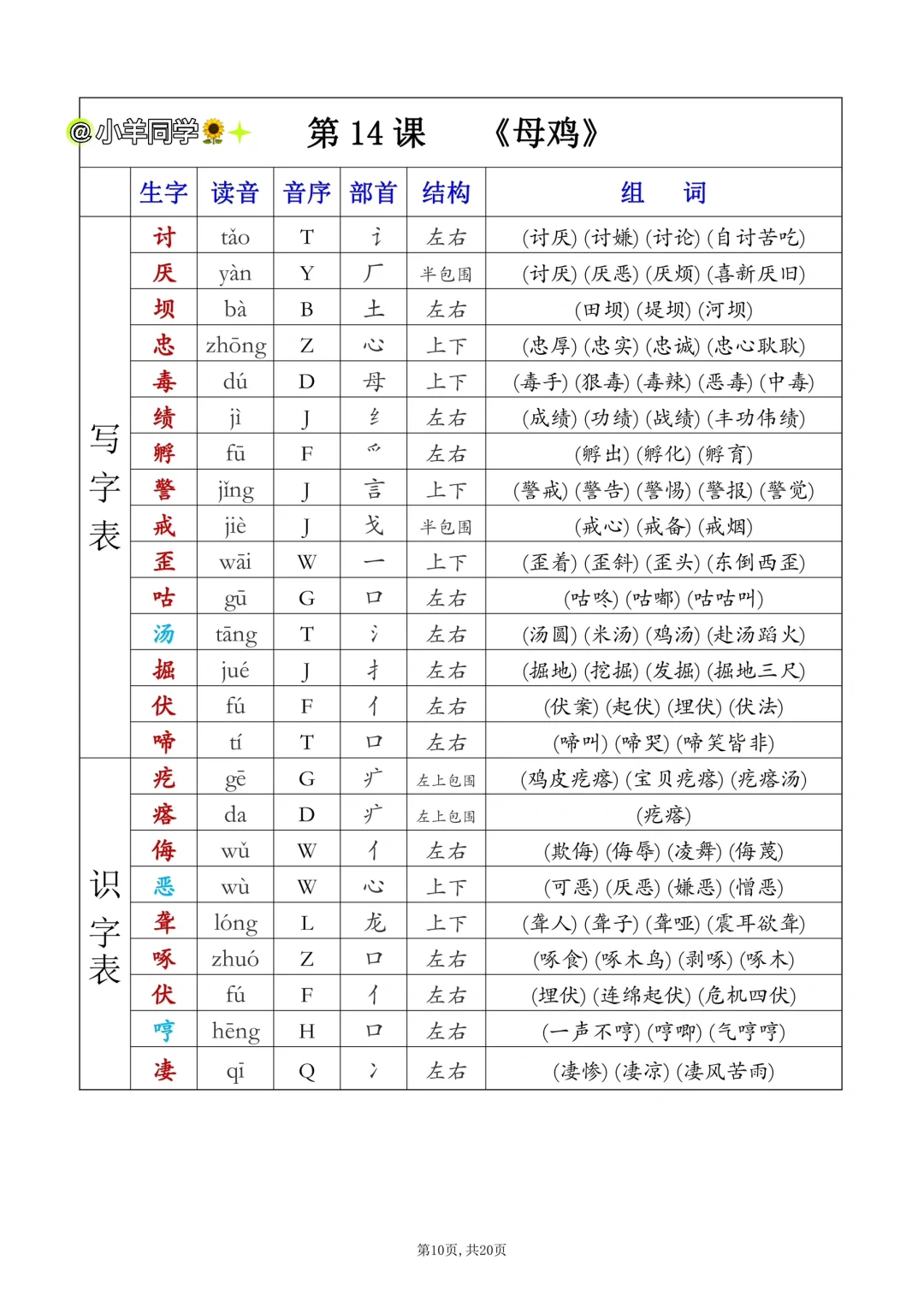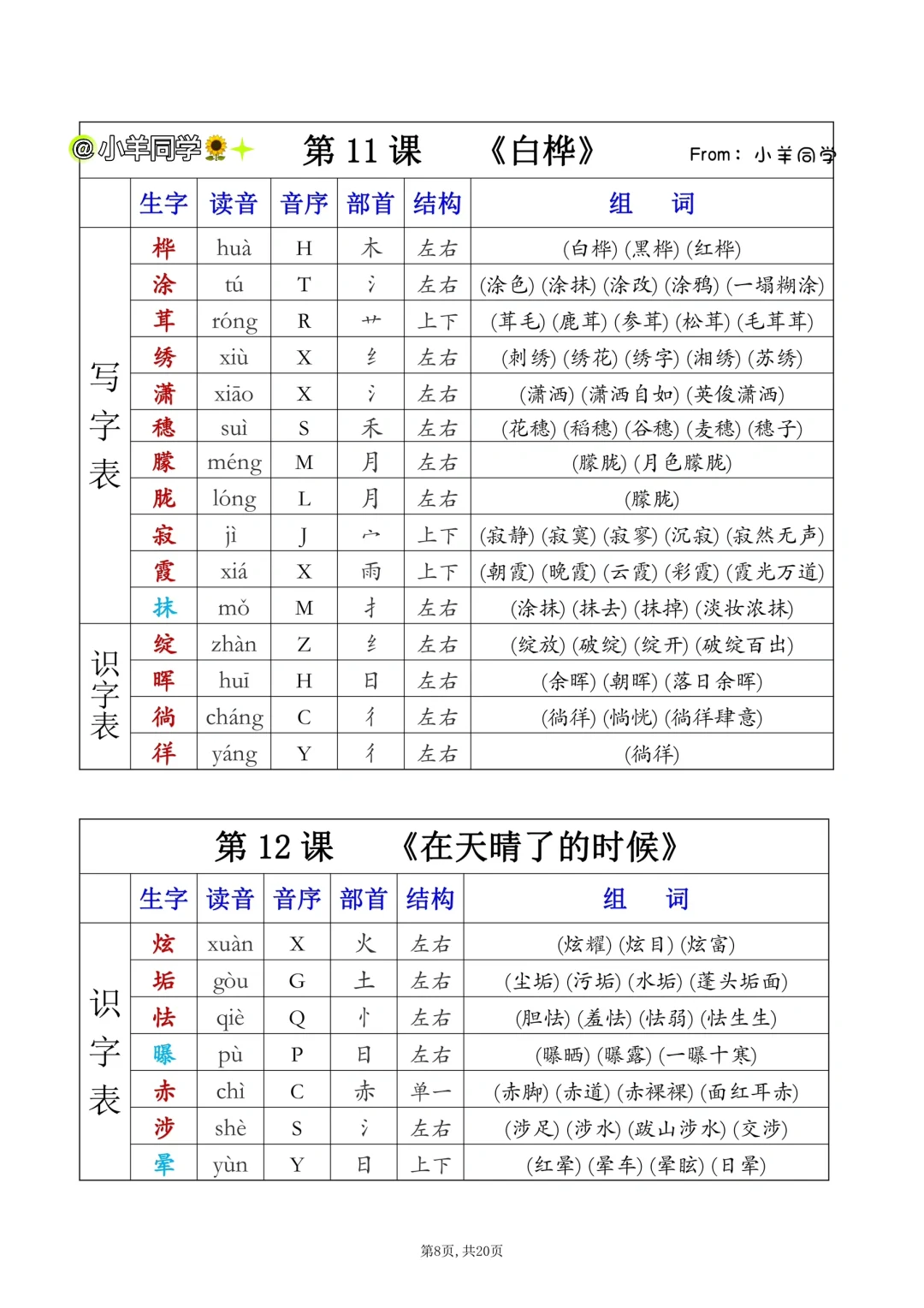 四年级下册✨课后生字表/识字表组词(一)