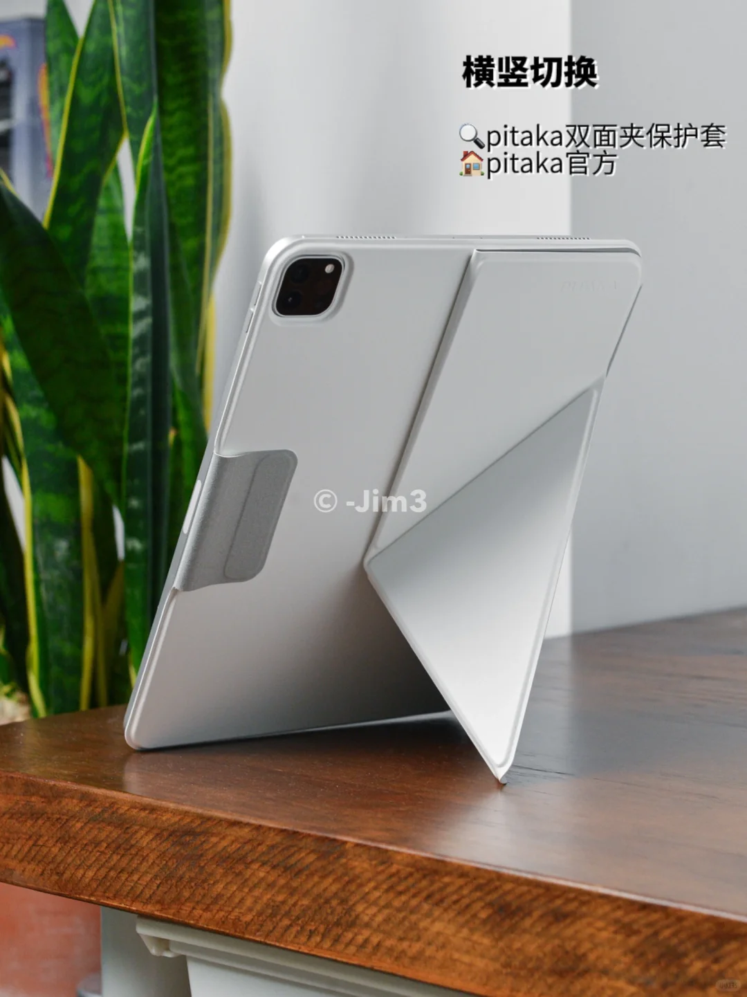 市面上很多的支架和保护套是以横屏来设计的,其实平板的竖屏使用也是很多人习惯的,也是更多软件适配的。大家或许会担心磁吸的套保护不到位,但平板的使用不像手机,跌落的可能性还是比较小的。而且这家的表面仿皮革纹处理还是非常舒服的。
