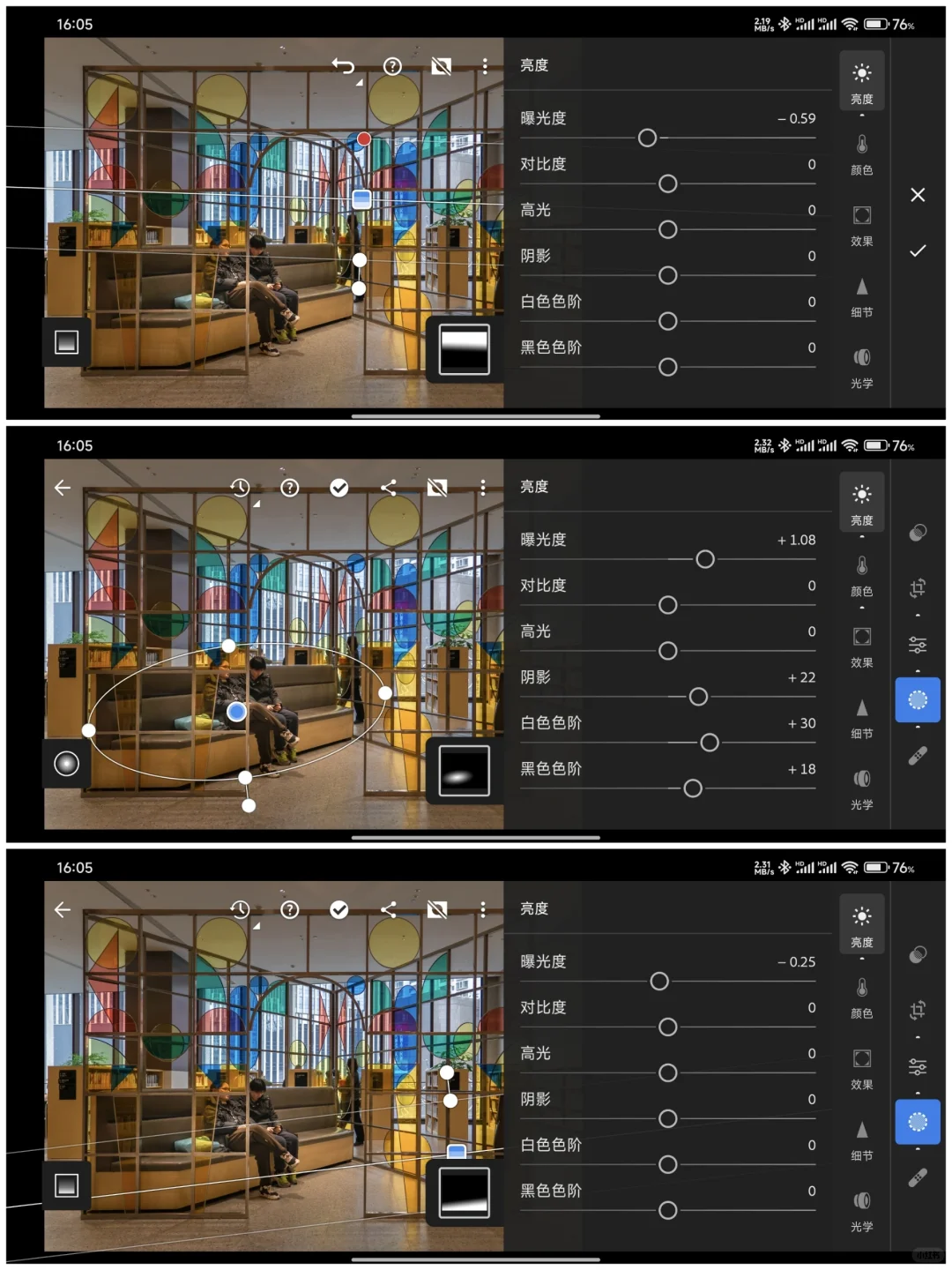 蒙版1️⃣:做一个线性渐变,压暗照片上面有窗户的亮光部分