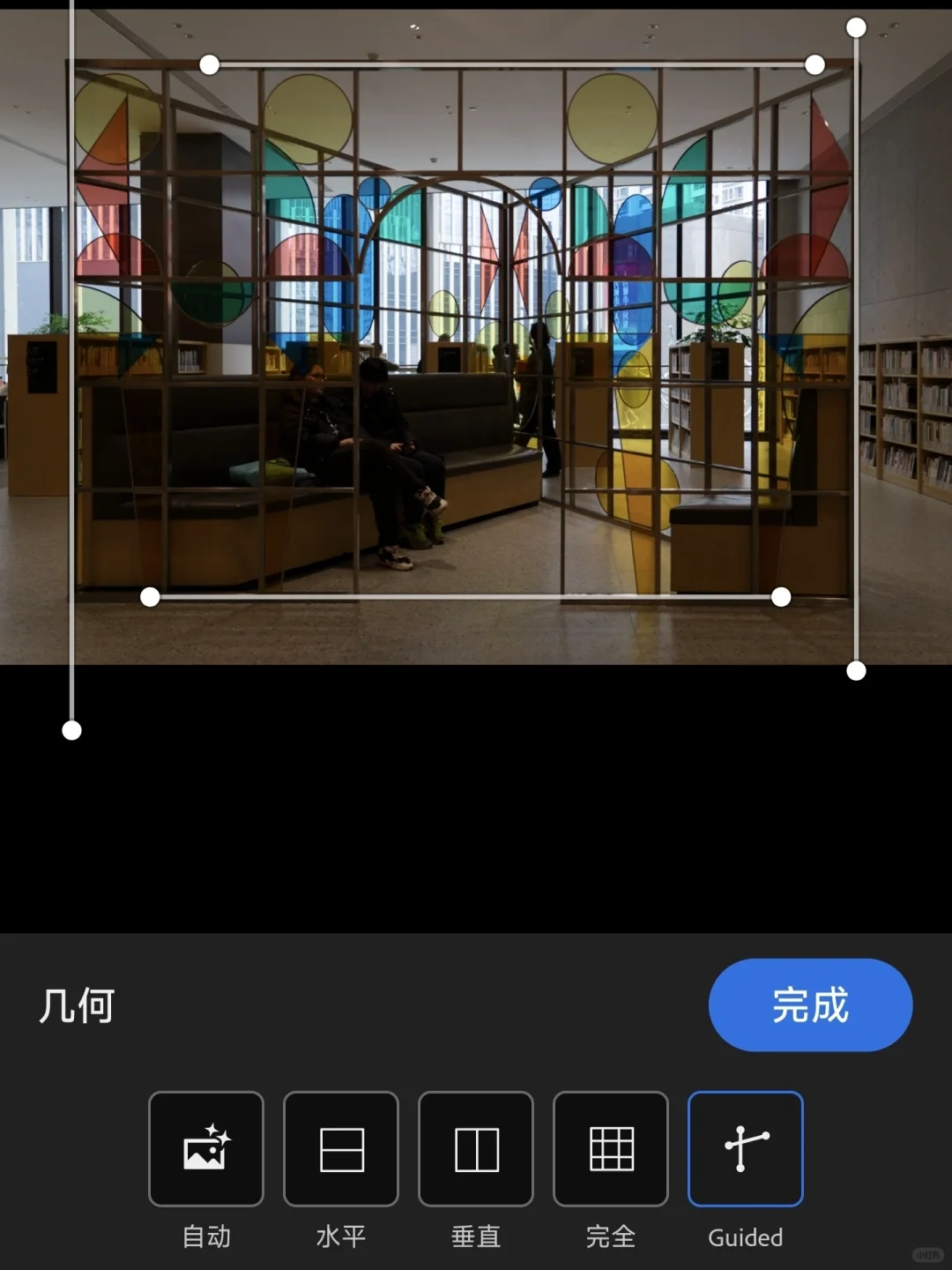 ⚖️手动矫正画面:点击→裁剪→🖌符号→Guided→水平,垂直画平行线,如图4️⃣