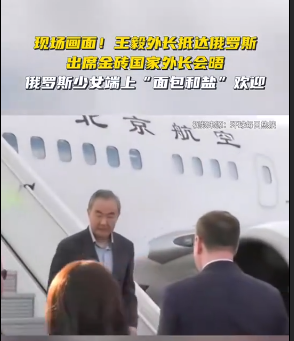 王毅外长在访问俄罗斯期间,受到了隆重的欢迎。据报道,当王毅外长抵达俄罗斯时,俄罗斯少女端上“面包和盐”进行欢迎,这是俄罗斯的传统礼仪,象征着对客人的尊敬和好客之情。这次访问是在美欧集团孤立俄罗斯,援助乌克兰的背景下举行的,俄罗斯急需外部伙伴的“同情理解”,以此打破美欧的围攻。此次金砖国家外长会议放在俄罗斯举行,可见中国巴西印度等国对俄罗斯的战略信任。