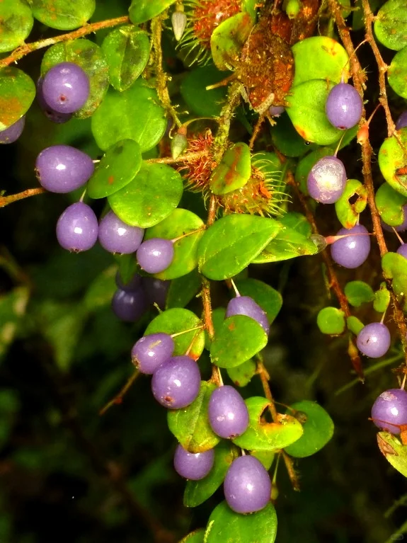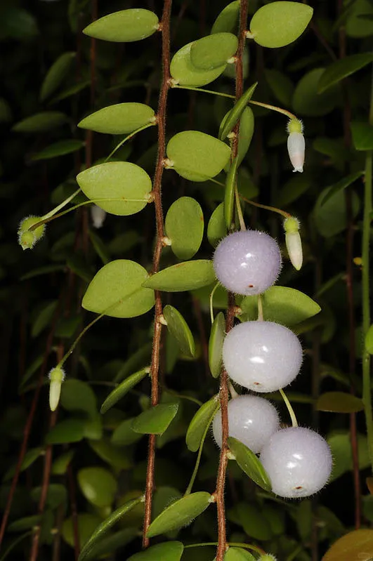 sphyrospermum buxifolium 杜鹃花科越橘组提灯莓属 一种罕见的亚热带蓝莓,原产于安第斯山脉。可以是附生的,有5英尺长的悬垂细枝,但通常较短,有圆形的浅绿色叶子。看起来就像是想在瀑布边的悬崖上。蛋形花,白色粉红色,尖端较深,后有半透明的紫罗兰色可食用浆果,种植需要没有霜冻。真漂亮[偷笑R]!!!
