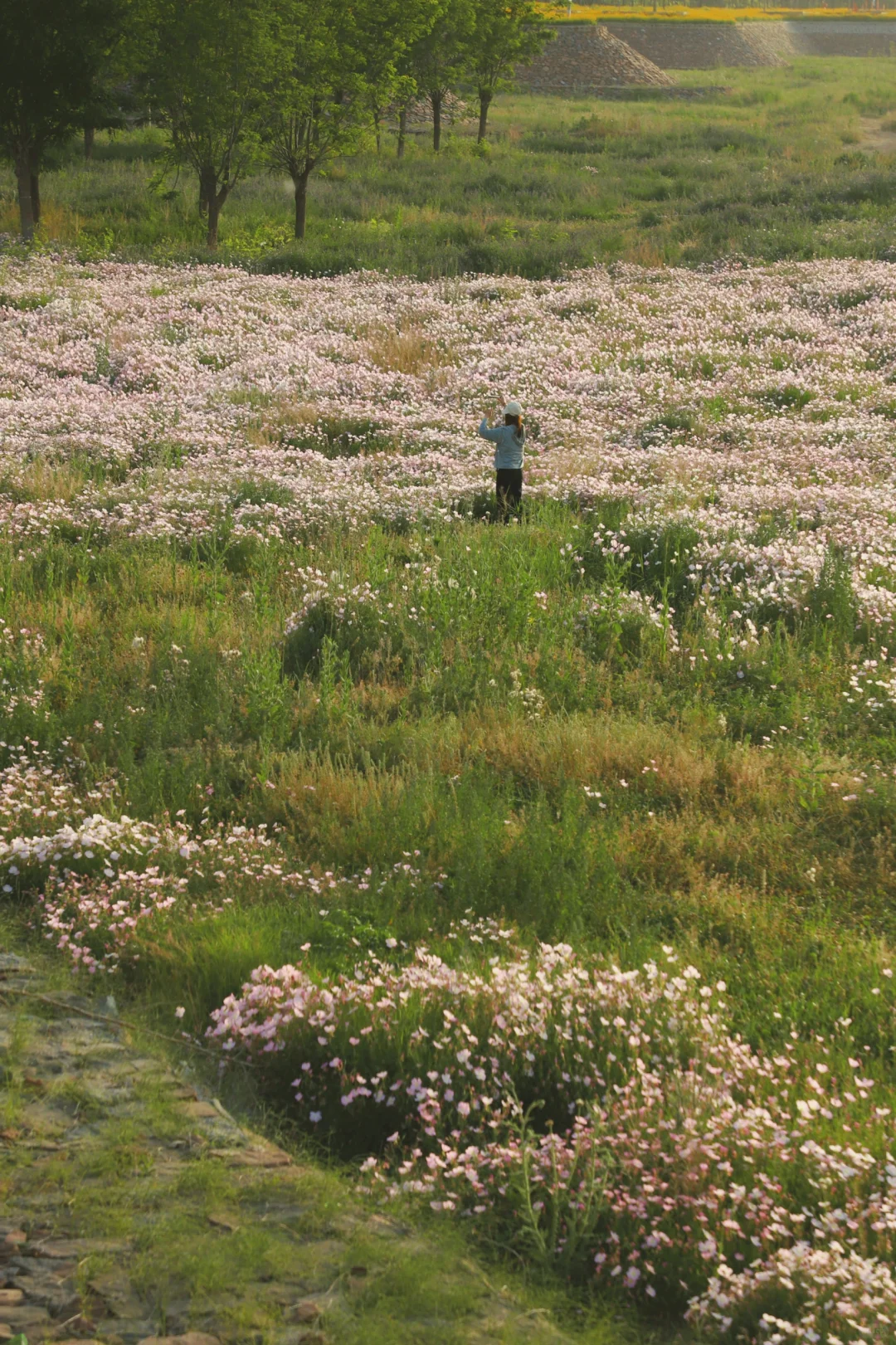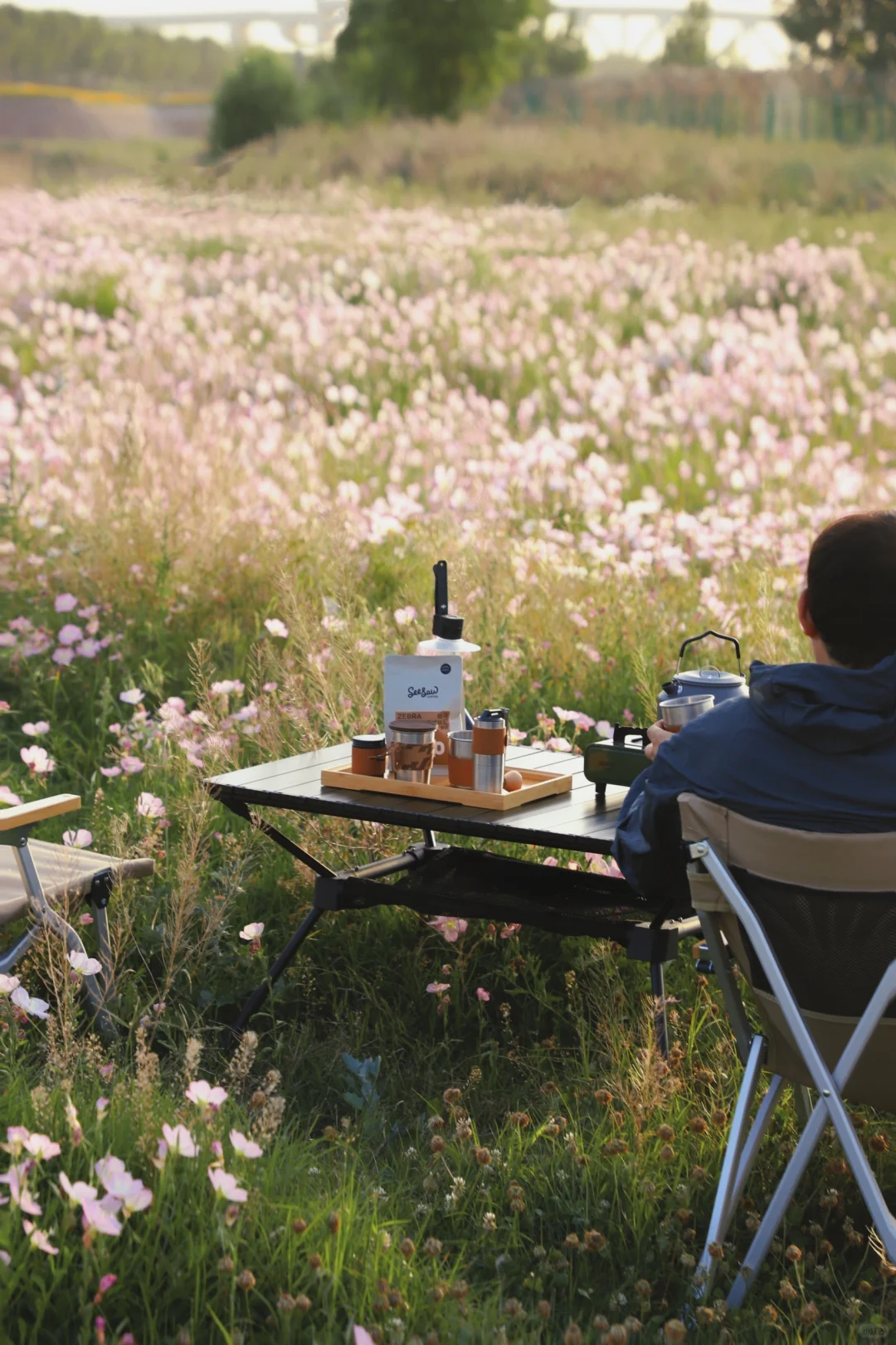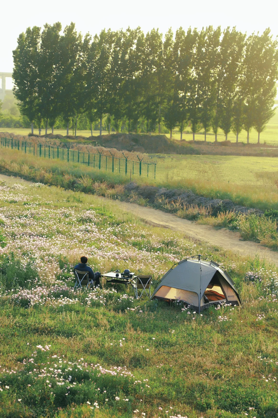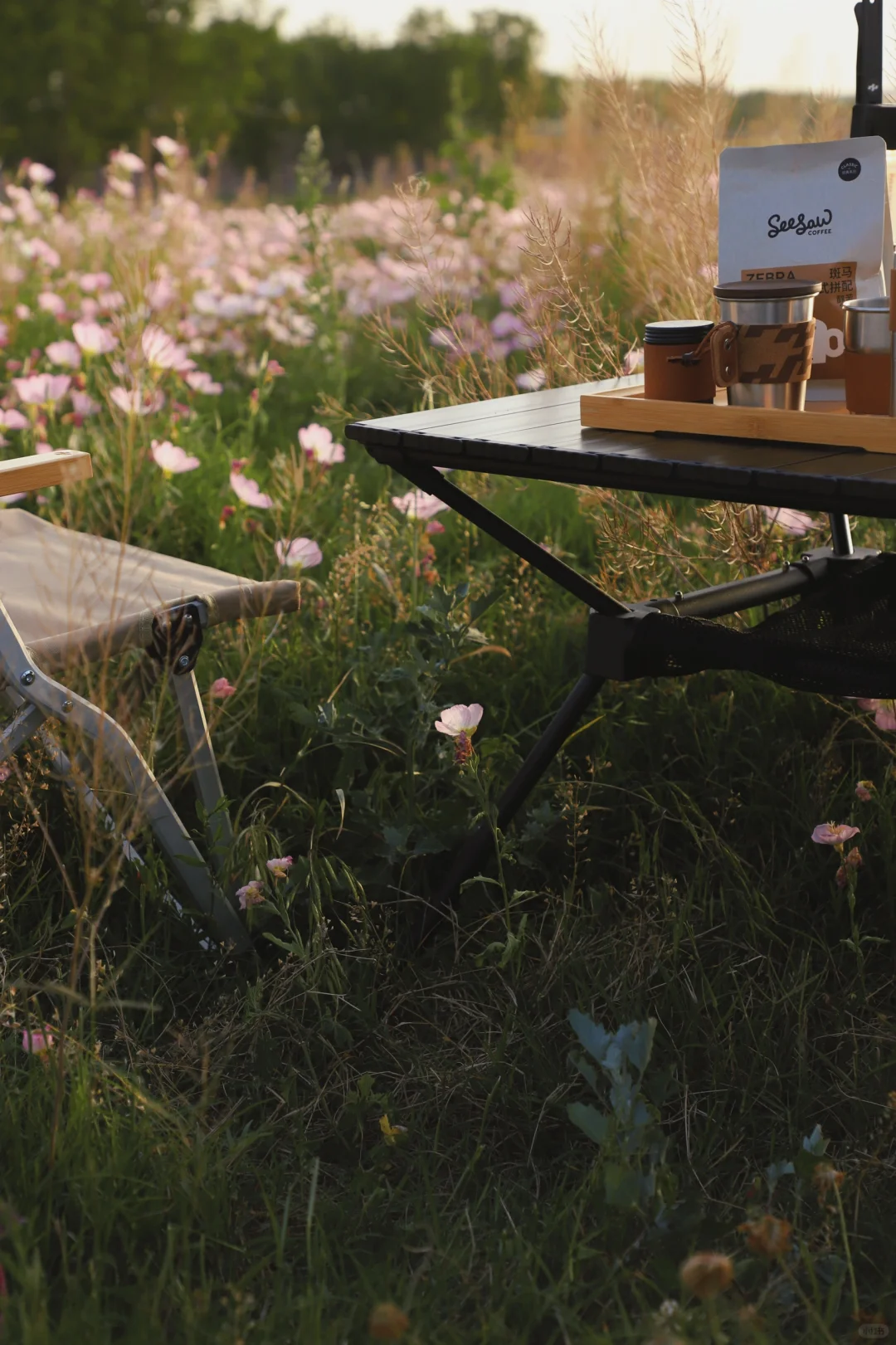 ▫️带了一套便携的轻量化露营桌椅,从大堤上可以下到滩地的花海里,在夕阳的花海里静等一场日落,-