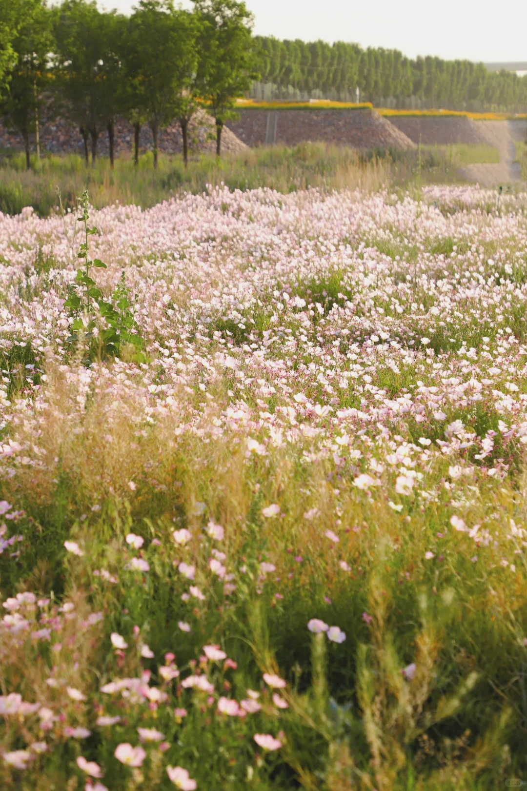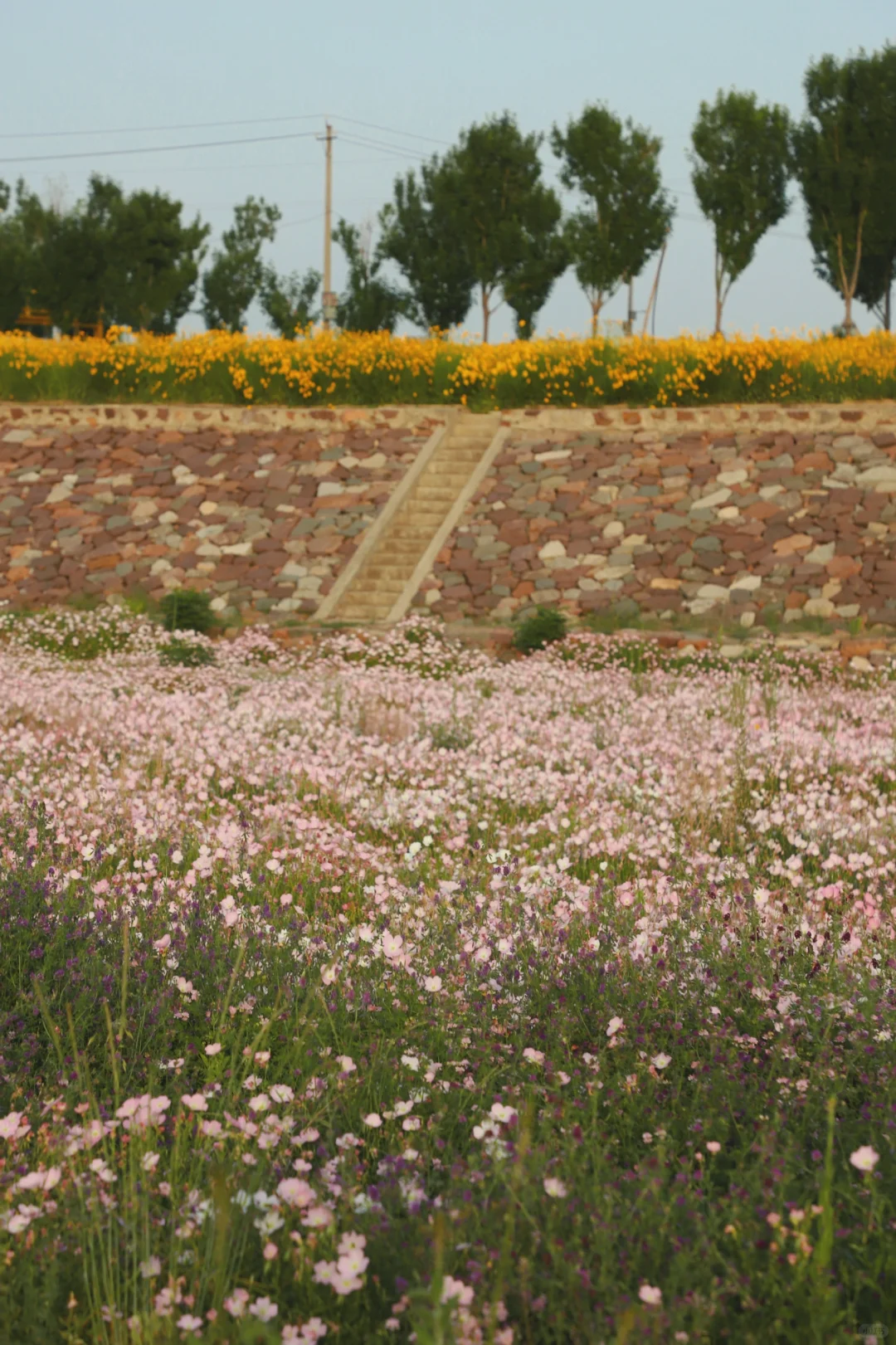 定位马渡黄河大堤,到地点后定位三刘寨黄河观景台,在大概向东五公里左右的沿路,开满了月见草和金鸡菊