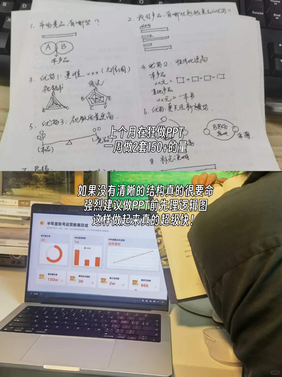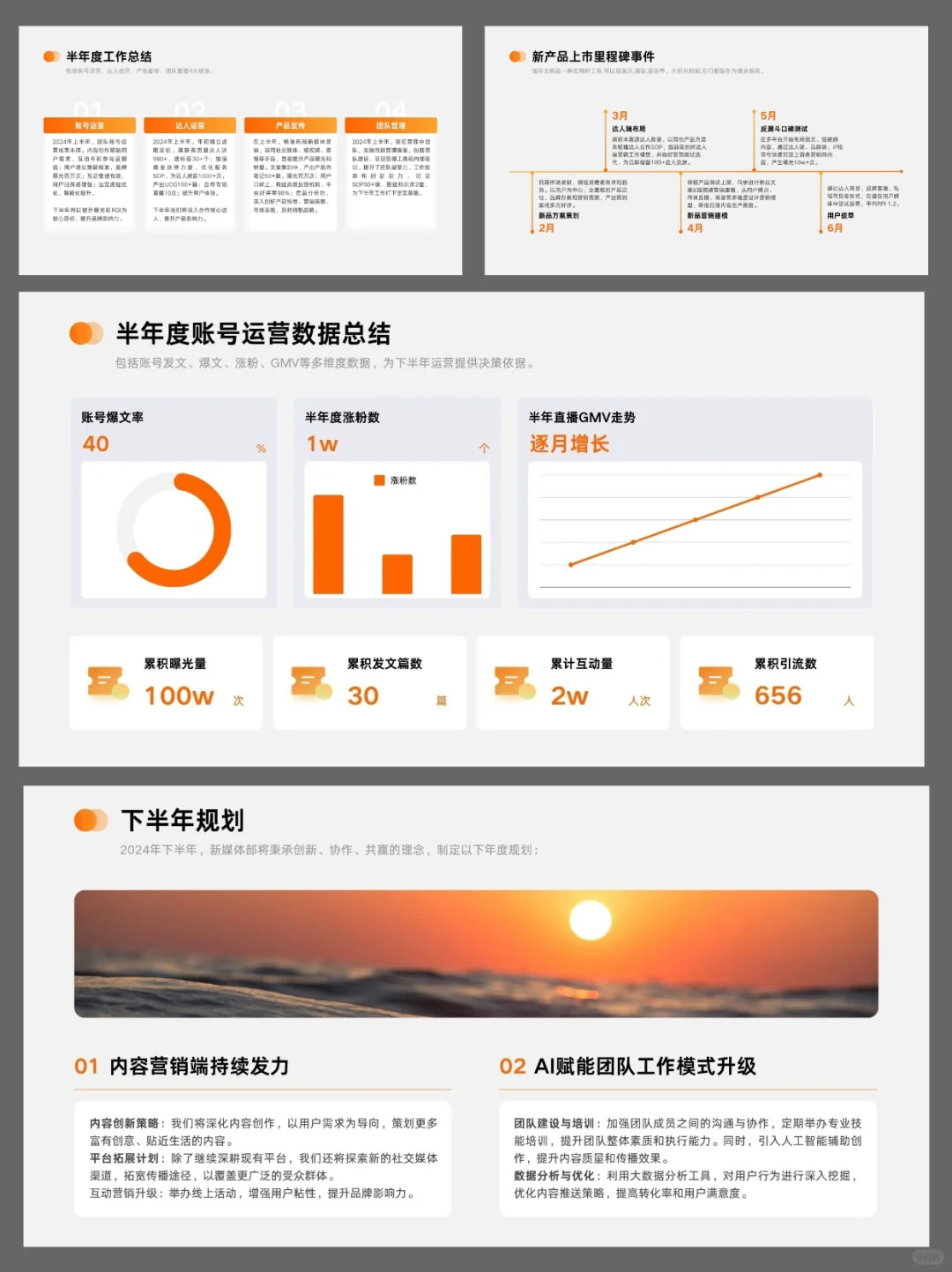 作为新媒体部负责人,经常要做活动策划案、新品介绍PPT、述职PPT,快速做PPT的思维已经刻入DNA~这次年中总结PPT,又是用AI很快搞定😎
