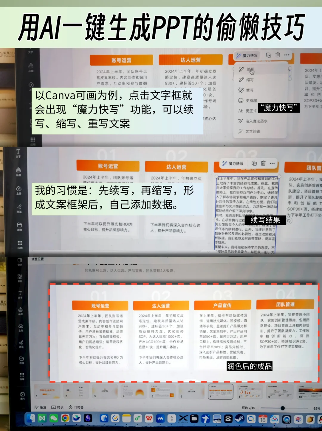 【AI润色文案】直接把文稿内容填进PPT之后用Canva的AI缩写功能,让PPT内容更精简正式。
