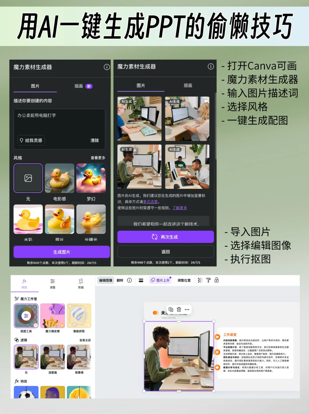【AI摄影图】不用自己拍,不用网上找图,直接AI一句话生成合适的图,然后用Canva可画自带抠图功能一键抠图