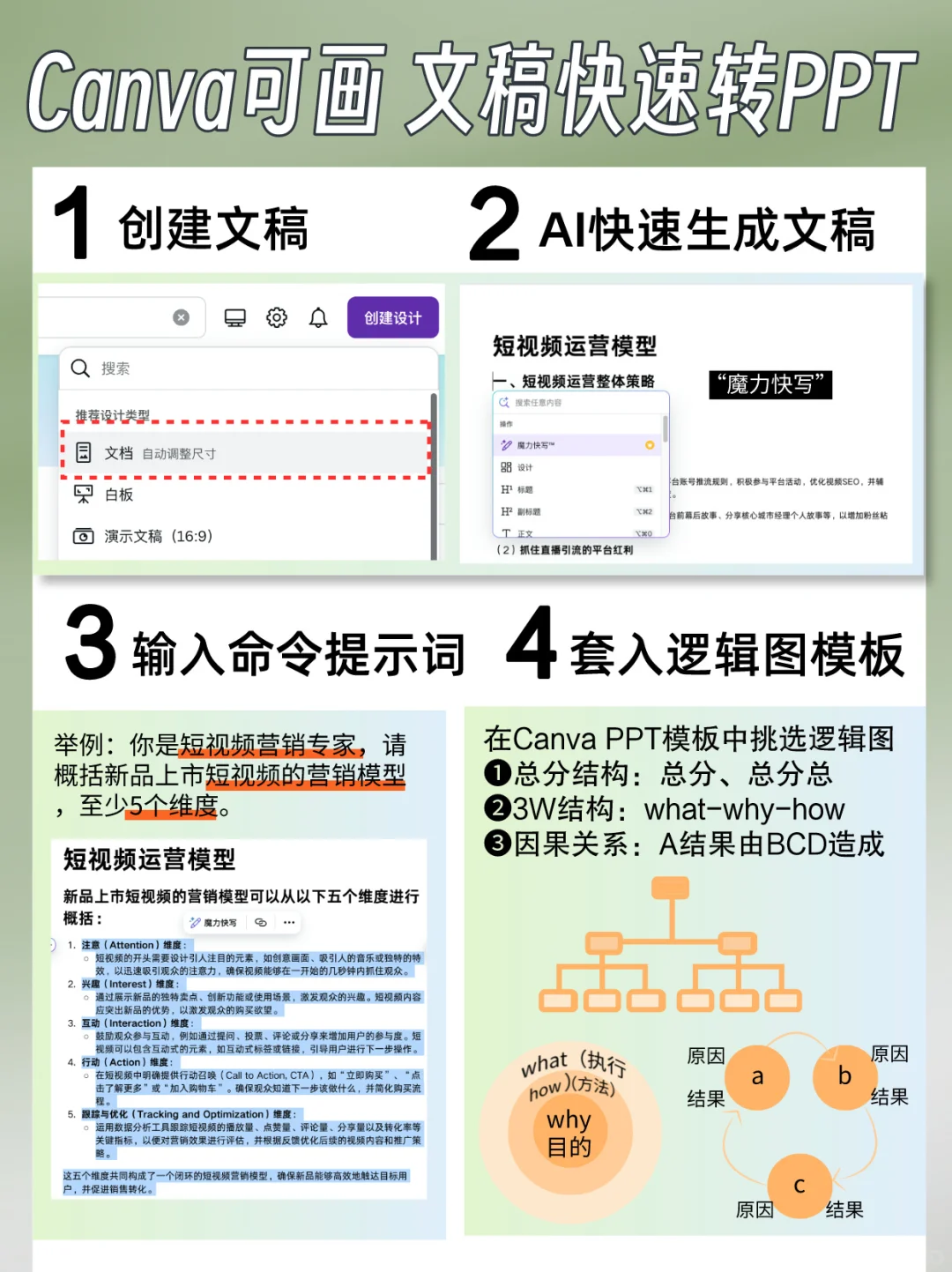 Canva可画可以帮你生成PPT大纲,构建框架。