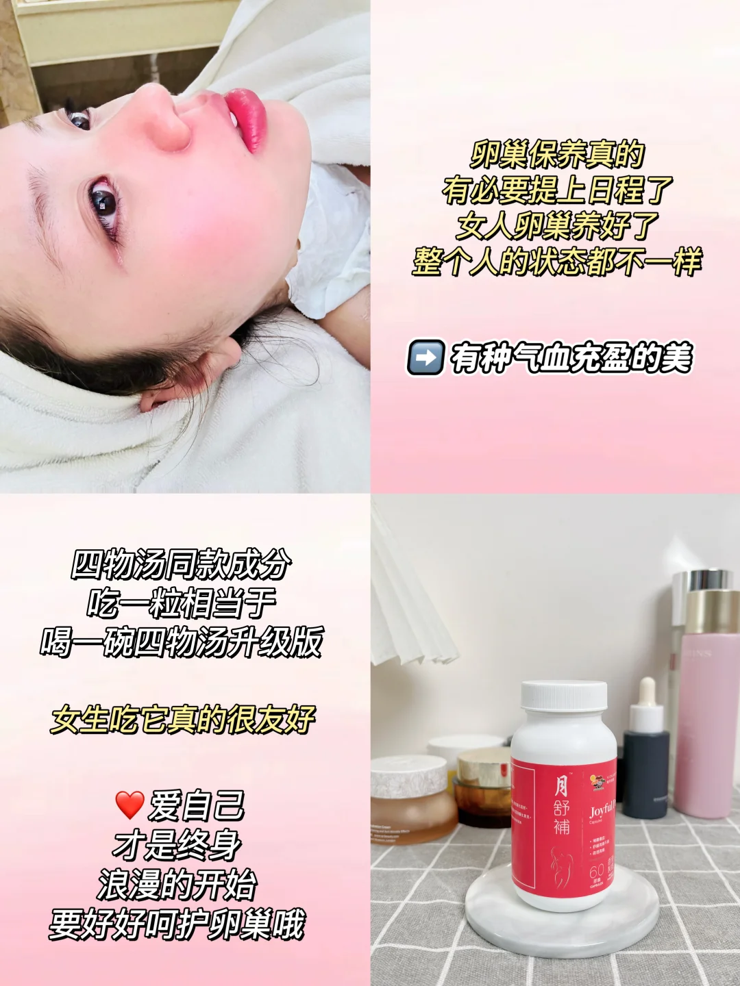 养ym真的是我们女生的日常功课,而且卵巢作为女性重要器官,需要为她注入活力。像我一样长期姨妈紊乱,面色暗沉的姐妹们,内服还挺有必要的,日常的健康生活饮食只是把状态拨到健康的轨道上去,但是想从根源改善的话,还得是内服。😘