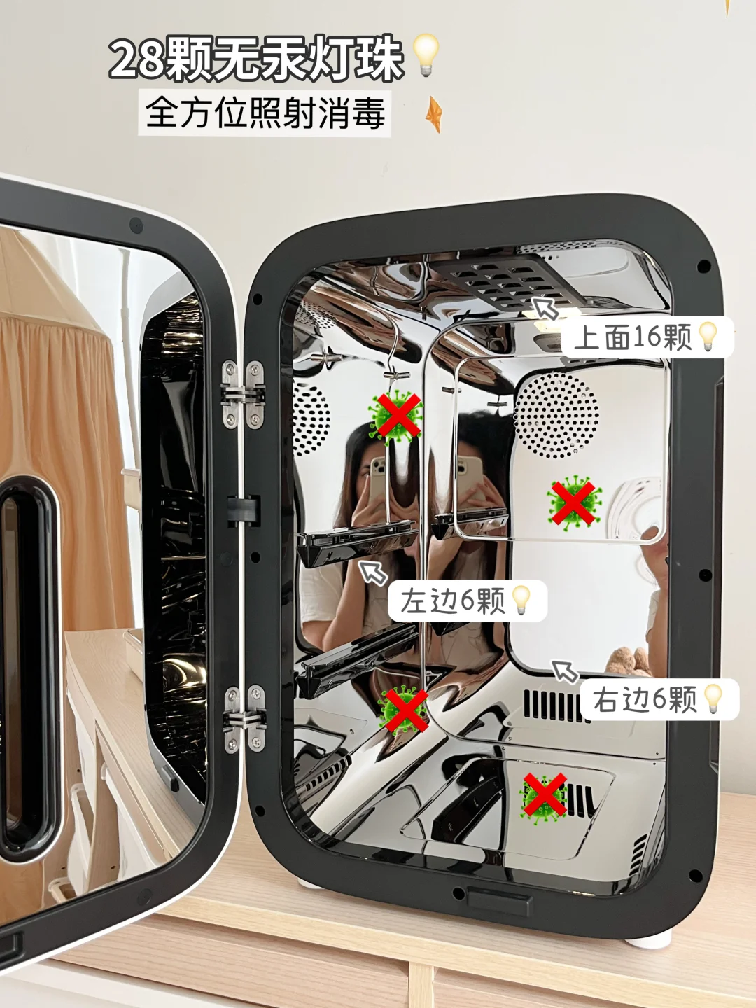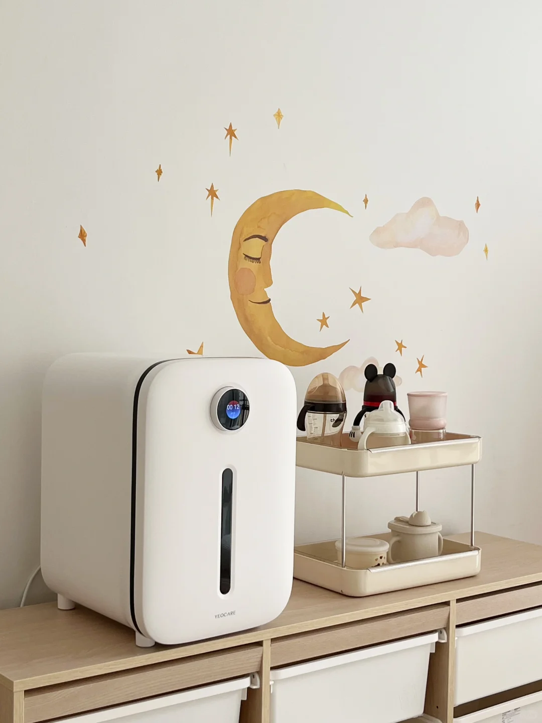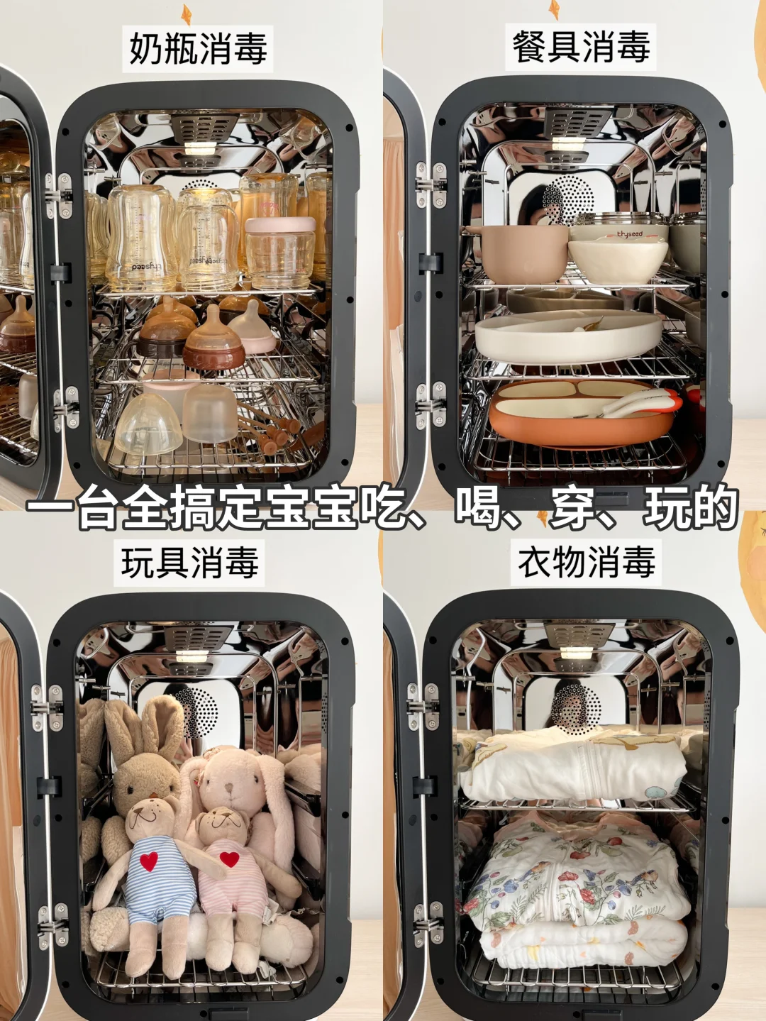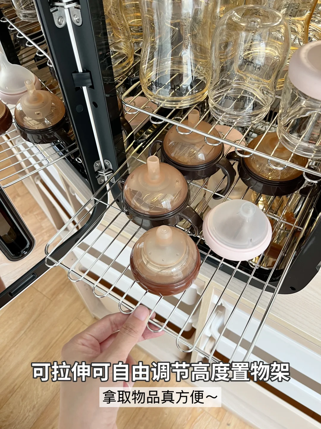 烘干消毒宝宝物品的时候,智能显示屏上会显示烘干温度和时间